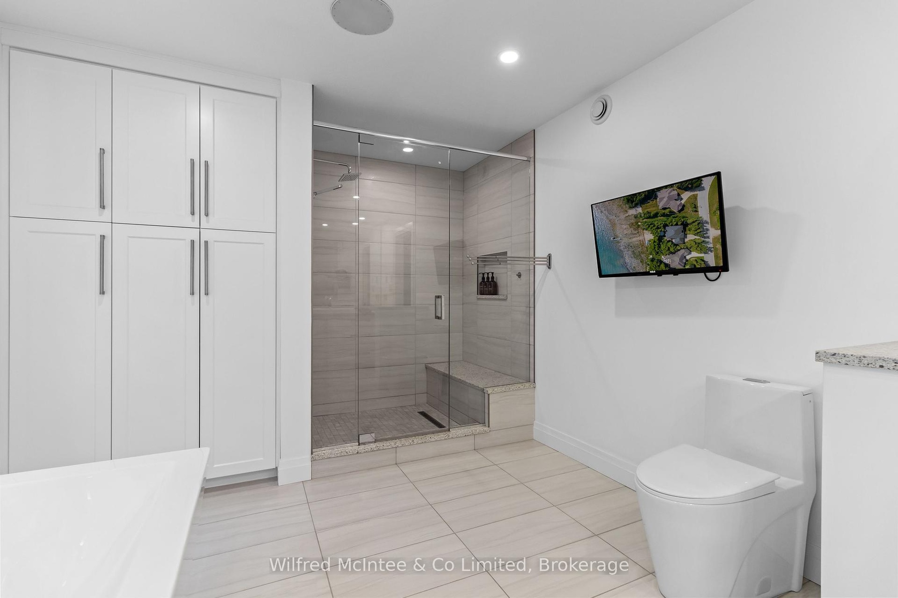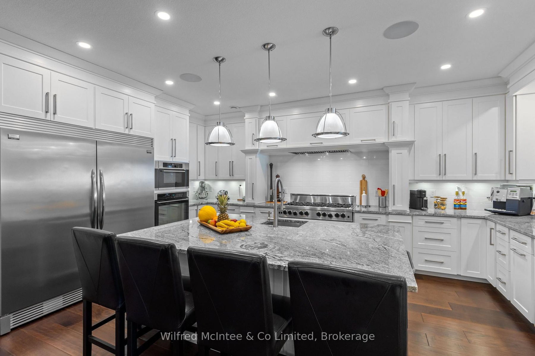 Welcome to one of Kincardines most breathtaking lakefront homes. You wont want to miss 159 Upper Lorne Beach Road, where most homes grab your attention this one leaves you speechless. Beyond the striking iron gates of Mystic Cove lies a one-owner custom home built in 2018 by luxury custom builder. This 3-bedroom, 5-bath masterpiece showcases elegance and craftsmanship throughout, with seamless hardwood and tile floors, 9-foot ceilings, and 8-foot solid core doors. The open-concept living area features a stunning double-sided propane fireplace and a discreet media hub. The chefs kitchen boasts granite countertops, a premium 48-inch, 8-burner propane stove, full fridge/freezer, beverage and wine fridges, and 12-foot patio doors opening to a tiered deck with glass railings, solid wood posts, and vinyl decking. Upstairs, every bedroom has its own ensuite with quartz counters and Bluetooth mirrors. The primary suite offers a spa-inspired bath, walk-through closet, and private upper deck. The finished walkout basement impresses with high ceilings, a clear view of the water, a separate entrance from the garage for in-law or guest accommodations, and a beautiful 3-piece bath. Outside, enjoy nearly 100 feet of pristine shoreline, fine beach gravel, and your Dock in a Box the only dock in sight. Your forever retreat awaits book your private showing today! . Contact your Realtor today.
