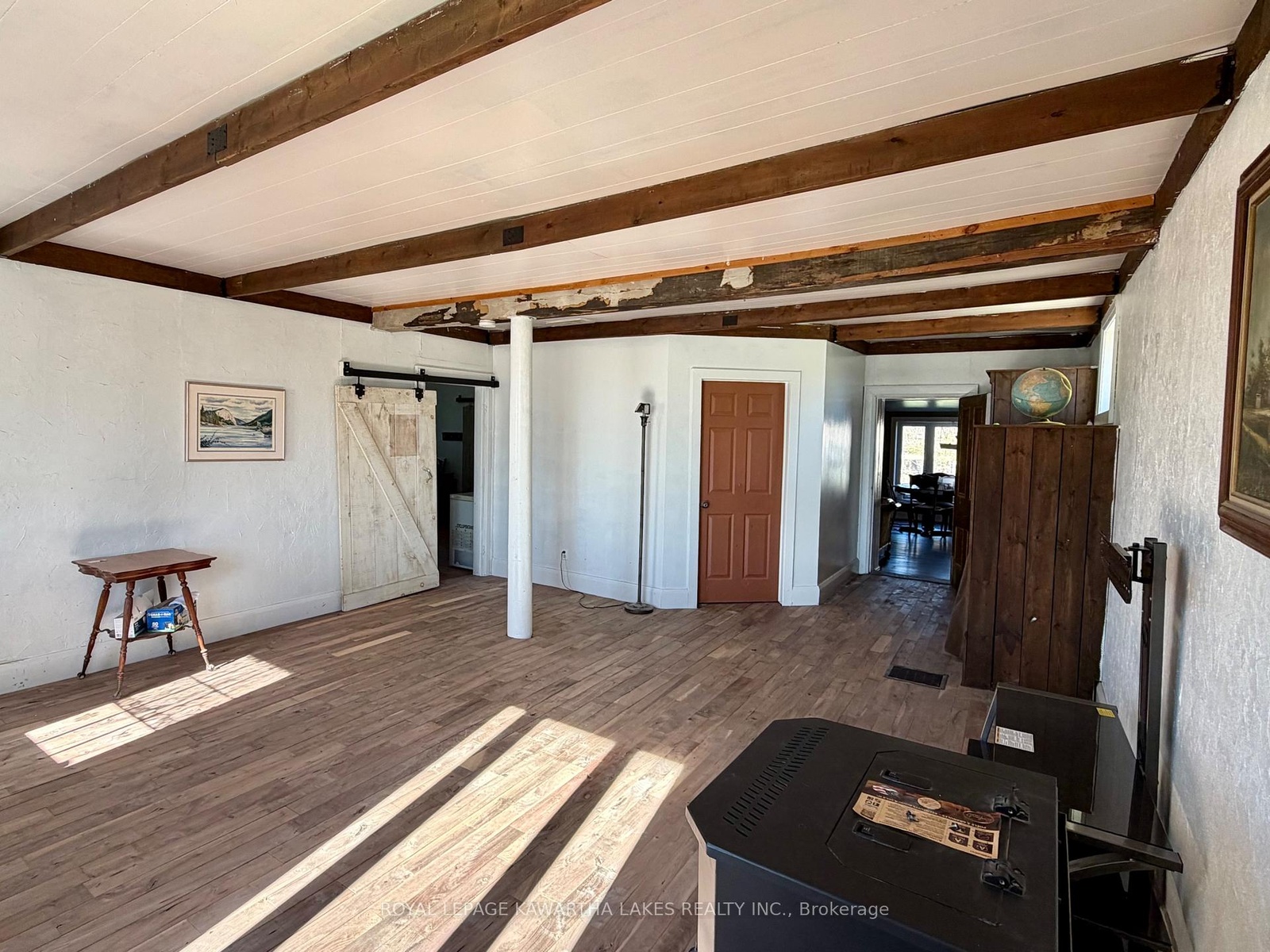 Welcome to your slice of country paradise where space, comfort, and fresh air meet! This spacious 4-bedroom, 2-bath home (approx. 2,400 sq. ft.) sits on a beautiful 95 x 165 ft lot, offering plenty of room to live, grow, and enjoy the outdoors. Step inside and discover a warm, inviting layout with room for everyone. The large eat-in kitchen is perfect for big breakfasts and weekend baking sessions, while the formal dining room sets the stage for family dinners and special celebrations. Cozy up in the living room by the pellet stove on cool evenings, kick back in the family room, or turn the den into your dream home office... There is space for every part of life here. The attached oversized double garage is a real gem, featuring high ceilings, hydro, and plenty of natural light (ideal for projects, hobbies, or parking your favourite toys). A sturdy barn with hydro and a concrete floor adds even more possibilities for storage, a workshop, or creative ventures. Outdoors, this fenced country lot is a true haven, complete with a greenhouse, chicken coop, grapevines, and fruit trees. Whether you're a gardener, a hobby farmer, or simply love the country lifestyle, you'll feel right at home. There's even space to add a pool or expand your gardens! Recent updates bring peace of mind, including a rubber roof (2023) with a drainage-friendly slope, a propane forced-air furnace (2017, Sunderland Co-op), a newer well pump (approx. 3 years old), and a septic system pumped in 2024. The full-height basement features a solid limestone foundation, concrete floors, support beams, and a sump pump-offering great utility and storage. The property line even extends about 7 feet beyond the rear fence, and a recent survey is available upon request. With all its updates, charm, and outdoor space, this property is the perfect blend of country living and modern comfort, just minutes from Woodville.