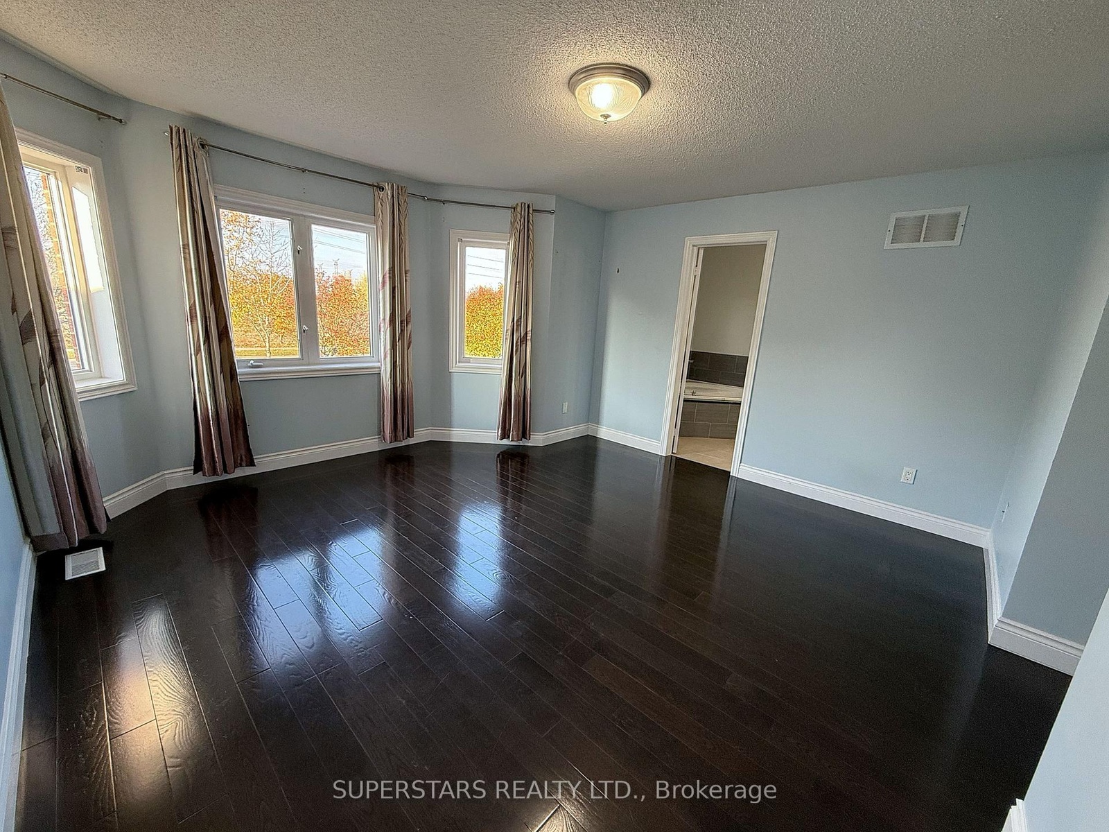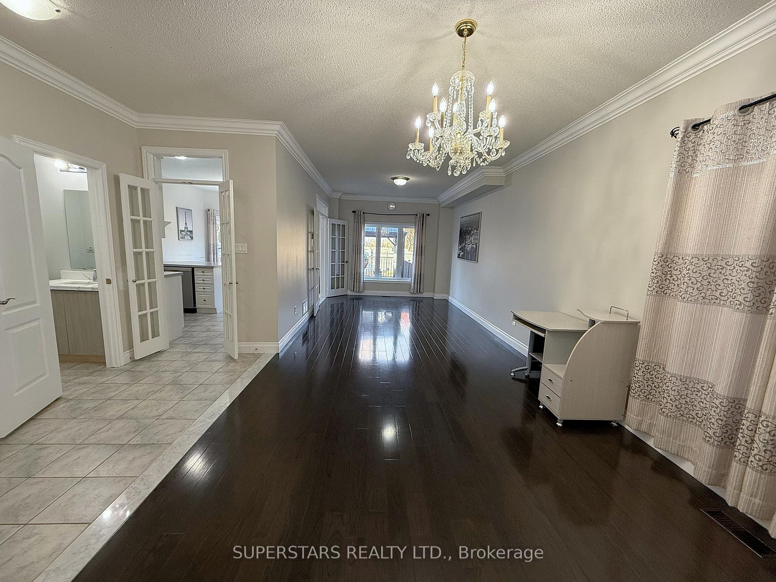 A bright interior with 9' ceilings and hardwood floors throughout.