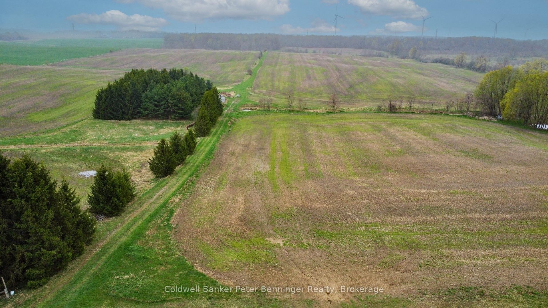 Approximately 94 agricultural acres for sale in Bruce County west of Highway 21, between Tiverton and Port Elgin that consists of approximately 65 acres cropland (believed to be Elderslie Silty Clay loam but buyer will need to verify) , approximately 25 acres mixed hardwood bush and approximately 4 acres Environmentally Protected (EP) zoning along 2 small creeks that cross the property. Sellers wish to sell to a buyer who will qualify for a surplus farm dwelling severance. Upon an accepted Agreement of Purchase and Sale with the severance as a condition, the sellers will commence the severance application to allow the home, small workshop and approximately 3 acres (not part of the approximately 94 acres listed) to be retained by the Sellers. This is not only an acreage of cropland and bush but the property still has history of the original farm. There is an easy central access laneway, from the concession to the back of the farm that crosses the 2 creeks and passes by the original home's location where the partial barn foundation remains with a healthy grove of Pine trees and possibly an old dug well near the foundation. The current home to be severed is located on the north west corner of this farm. Excellent opportunity for a buyer or buyers who are looking to diversify their operations by adding to their crop acreage and enjoying a bush for wood management or recreational enjoyment. Crop rotation of soybeans and corn has been tenant managed. Possession will be determined when details of severance is available and buyers, sellers and tenant have determined an arrangement for the crops. Phased-in assessment information (2025) includes the entire farm as the listed property has not been assessed separately. There are no windmills on the listed property. (windmills in photos are on near-by properties).Sellers will consider selling land and home, see X12474852, as long as sellers may continue to live in the home for as long as they wish at free rent.