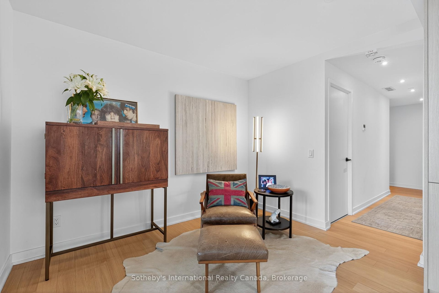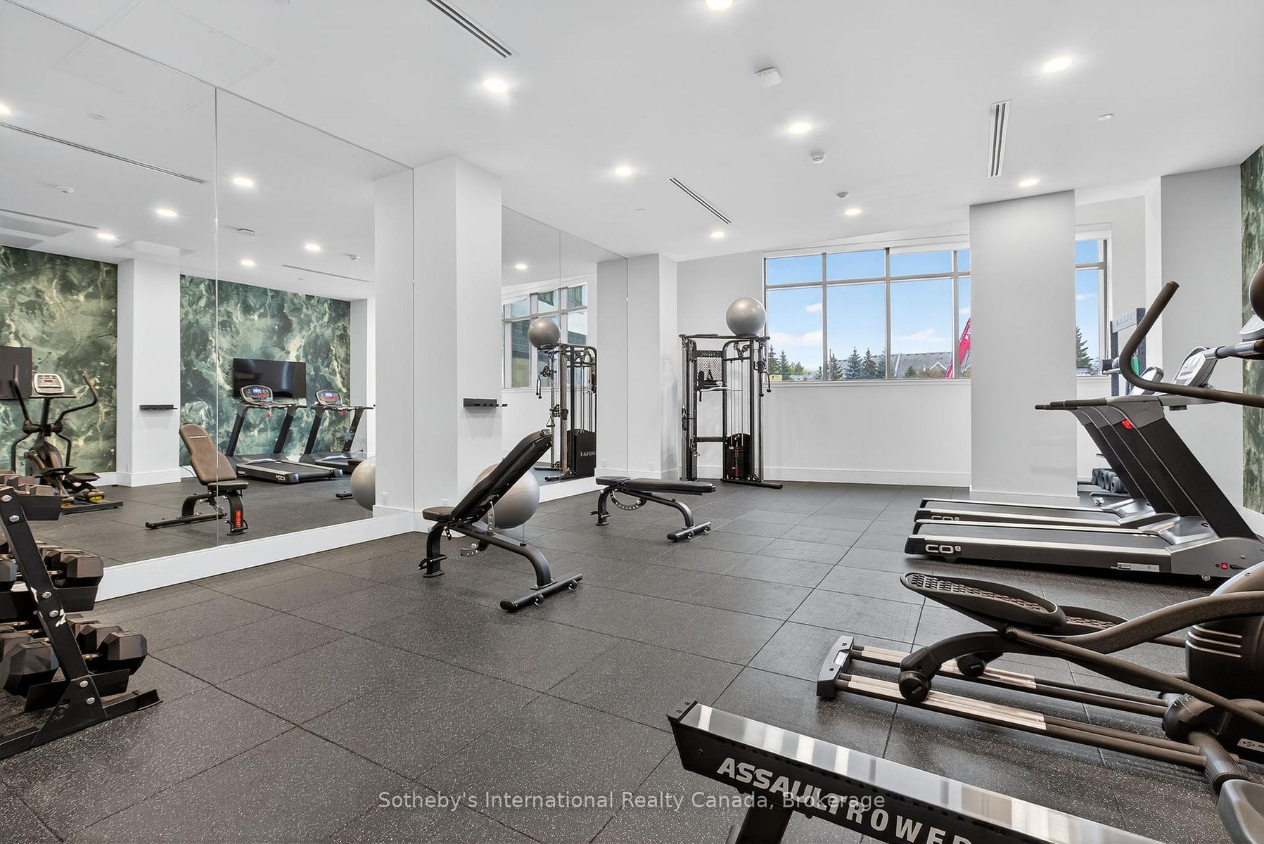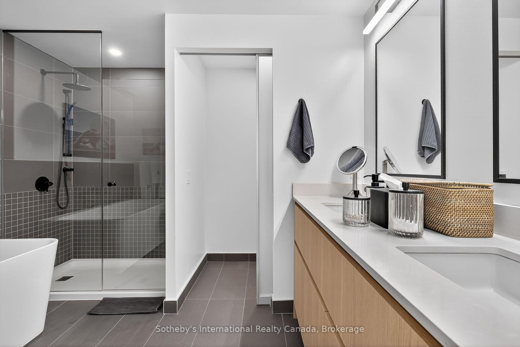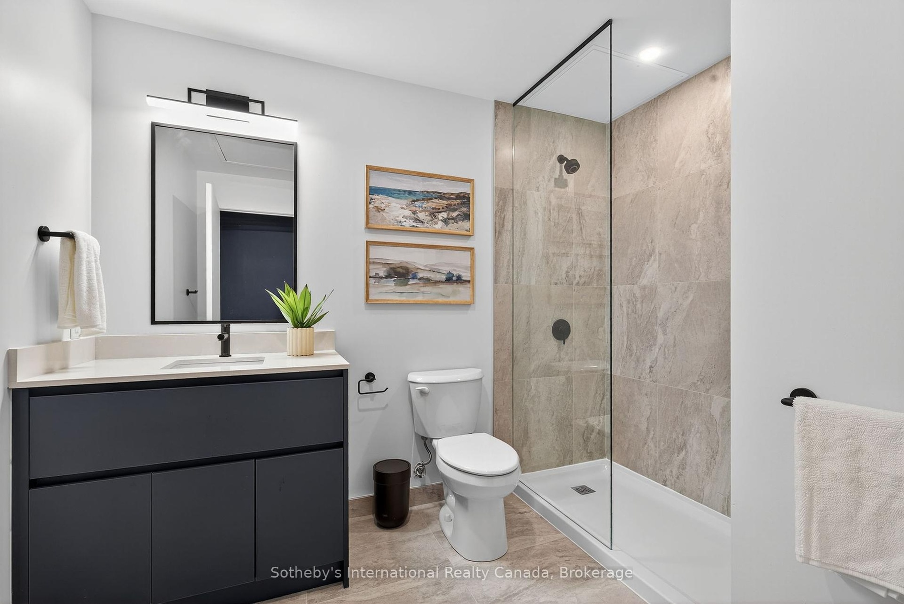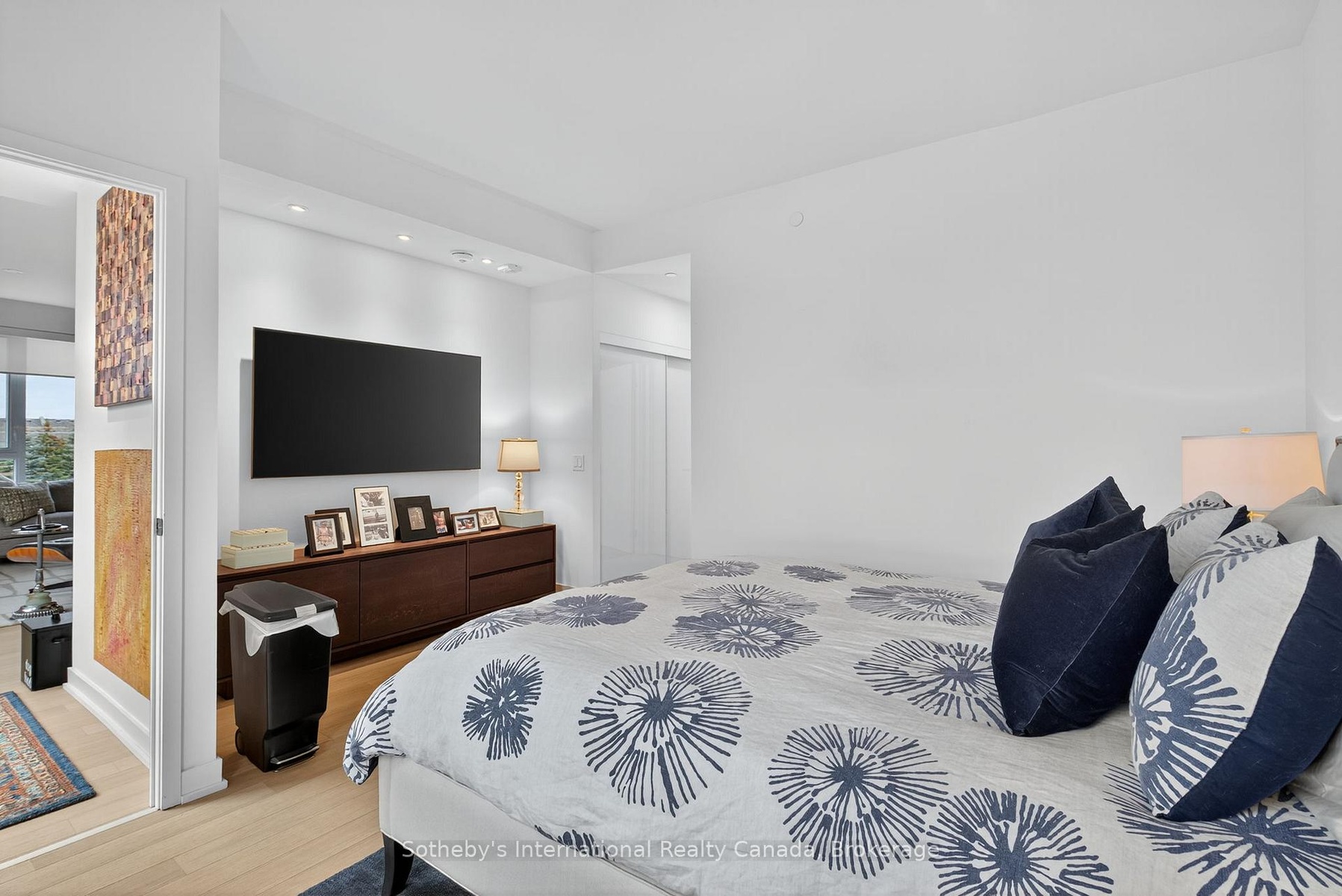 Luxury Waterfront Living in Collingwood. Welcome to this grand corner unit with panoramic views of Georgian Bay and ski hills, where floor-to-ceiling windows capture breathtaking sunrises and sunsets every day. Spanning 1,200 sq. ft. of customized living space, this residence is steps from the harbour and offers the ultimate blend of sophistication and lifestyle. Inside, you'll find wood and porcelain tile flooring throughout, and a large primary suite with a spa-like 5-piece ensuite with electric in-floor heating. The spacious den adds a layer of versatility, serving beautifully as a home office, guest suite, or both with a foldaway bed. Designer upgrades and a 100 sq. ft. covered terrace. Complete with two underground parking spaces one with EV charging and storage locker, this home redefines convenience. Indulge in resort-style amenities: guest suites, a pet spa, fitness studio, social lounge with water views, and a rooftop terrace. Surrounded by parkland and just a short stroll to historic downtown Collingwood's shops, dining, and festivals, you're also minutes from premier ski hills and golf clubs. This is more than a home its active luxury living at its finest.Taxes to be assessed.