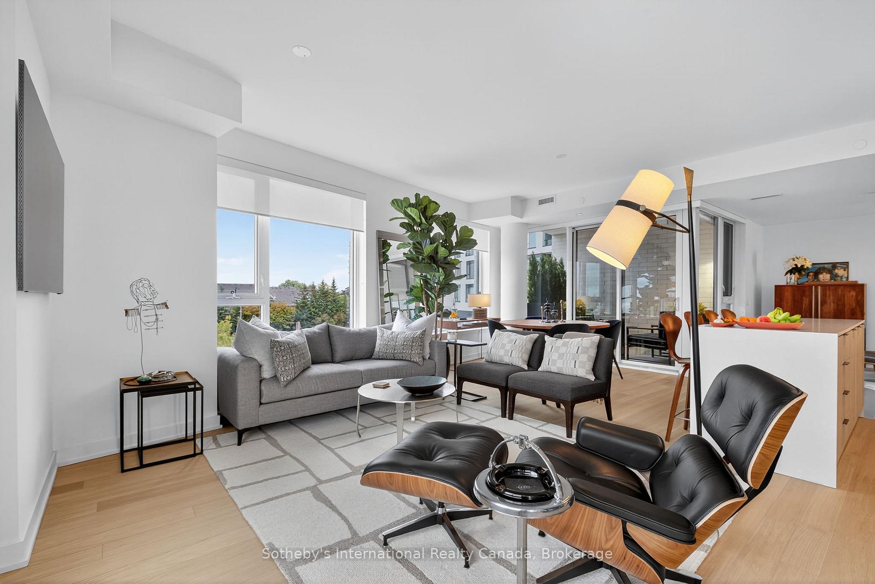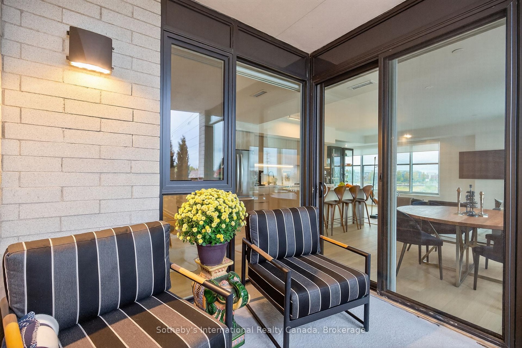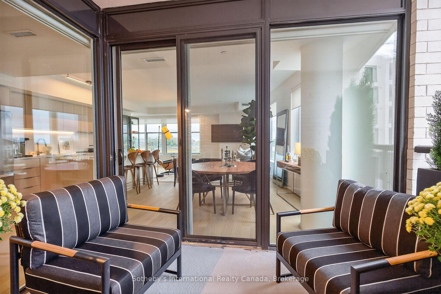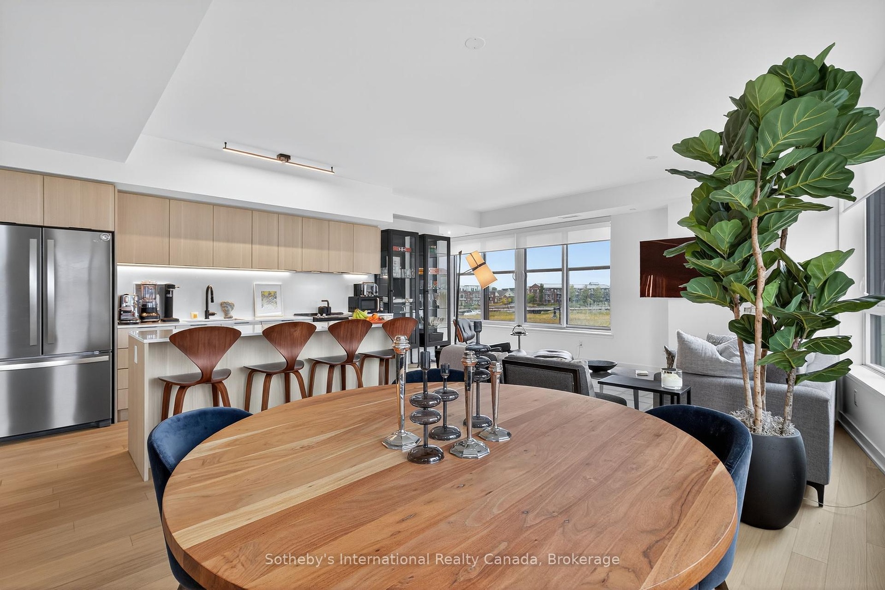 Luxury Waterfront Living in Collingwood. Welcome to this grand corner unit with panoramic views of Georgian Bay and ski hills, where floor-to-ceiling windows capture breathtaking sunrises and sunsets every day. Spanning 1,200 sq. ft. of customized living space, this residence is steps from the harbour and offers the ultimate blend of sophistication and lifestyle. Inside, you'll find wood and porcelain tile flooring throughout, and a large primary suite with a spa-like 5-piece ensuite with electric in-floor heating. The spacious den adds a layer of versatility, serving beautifully as a home office, guest suite, or both with a foldaway bed. Designer upgrades and a 100 sq. ft. covered terrace. Complete with two underground parking spaces one with EV charging and storage locker, this home redefines convenience. Indulge in resort-style amenities: guest suites, a pet spa, fitness studio, social lounge with water views, and a rooftop terrace. Surrounded by parkland and just a short stroll to historic downtown Collingwood's shops, dining, and festivals, you're also minutes from premier ski hills and golf clubs. This is more than a home its active luxury living at its finest.Taxes to be assessed.