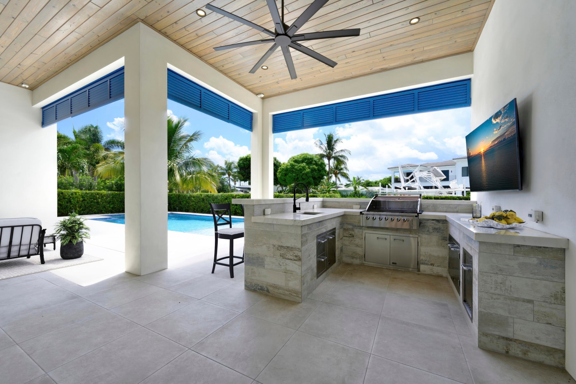 Experience coastal living in this 2022 custom-built waterfront estate in prestigious North Palm Beach. Perfectly situated on 80 feet of direct water frontage with a brand-new seawall, private dock, and 24,000 lb. lift, this residence offers effortless access to the Intracoastal and Atlantic Ocean; ideal for yachting, sport fishing, or sunset cruising. Designed with timeless elegance and modern sophistication, the home features 4 bedrooms, 3.5 baths, a private study, and an oversized 2-car garage. The chef's kitchen, complete with a massive pantry and top-tier finishes, anchors the open-concept living space with soaring 12-foot ceilings, creating an atmosphere of understated grandeur. The serene primary suite is a private sanctuary with spa-inspired details and sweeping view of the water.