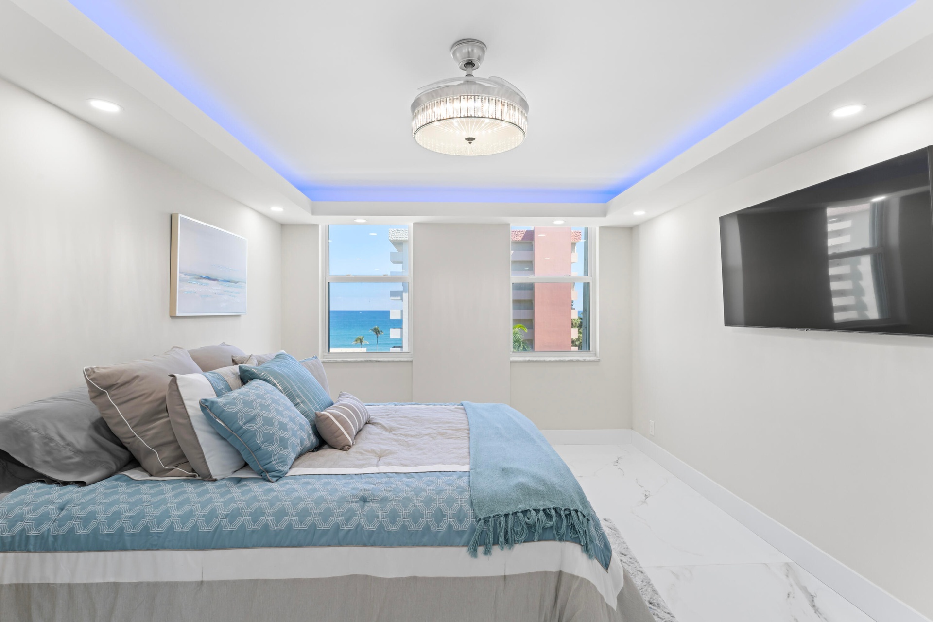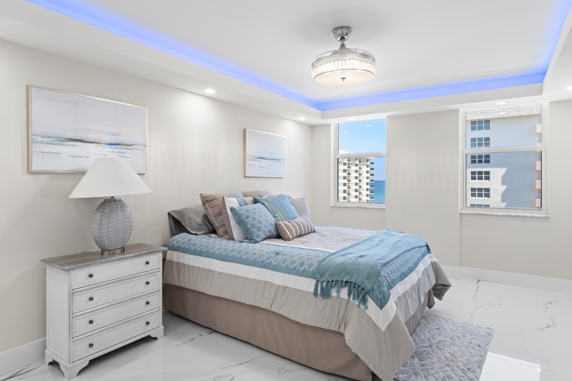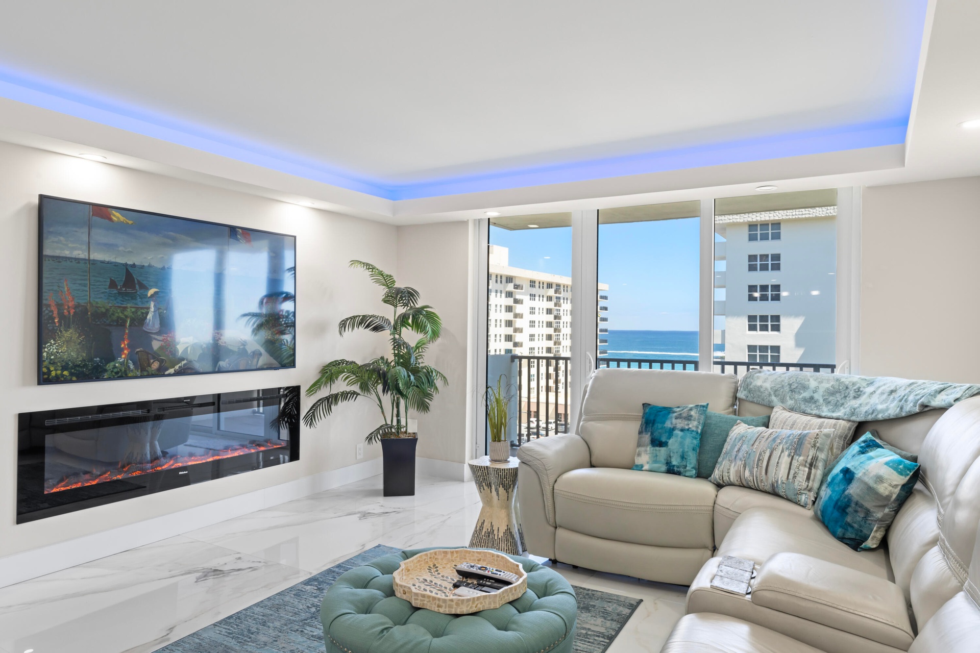 his is a show stopper! Located in exclusive Hillsboro Mile, nestled between the Intracoastal and the ocean, Opal Tower is just south of Deerfield Beach and just north of Pompano Beach and features gorgeous views. The kitchen of this meticulously 2/2 remodeled beachside condo features illuminated quartzite countertops that highlight the natural translucency and intricate patters of the stone. Complete with finger print resistant stainless steel appliances and custom cabinets, this kitchen is truly a Chef's dream. Every detail of this residence has been considered including custom designed ceiling lighting, molding, impact resistant windows, and tailored, motorized window treatments that are only visible when you want them to be.
