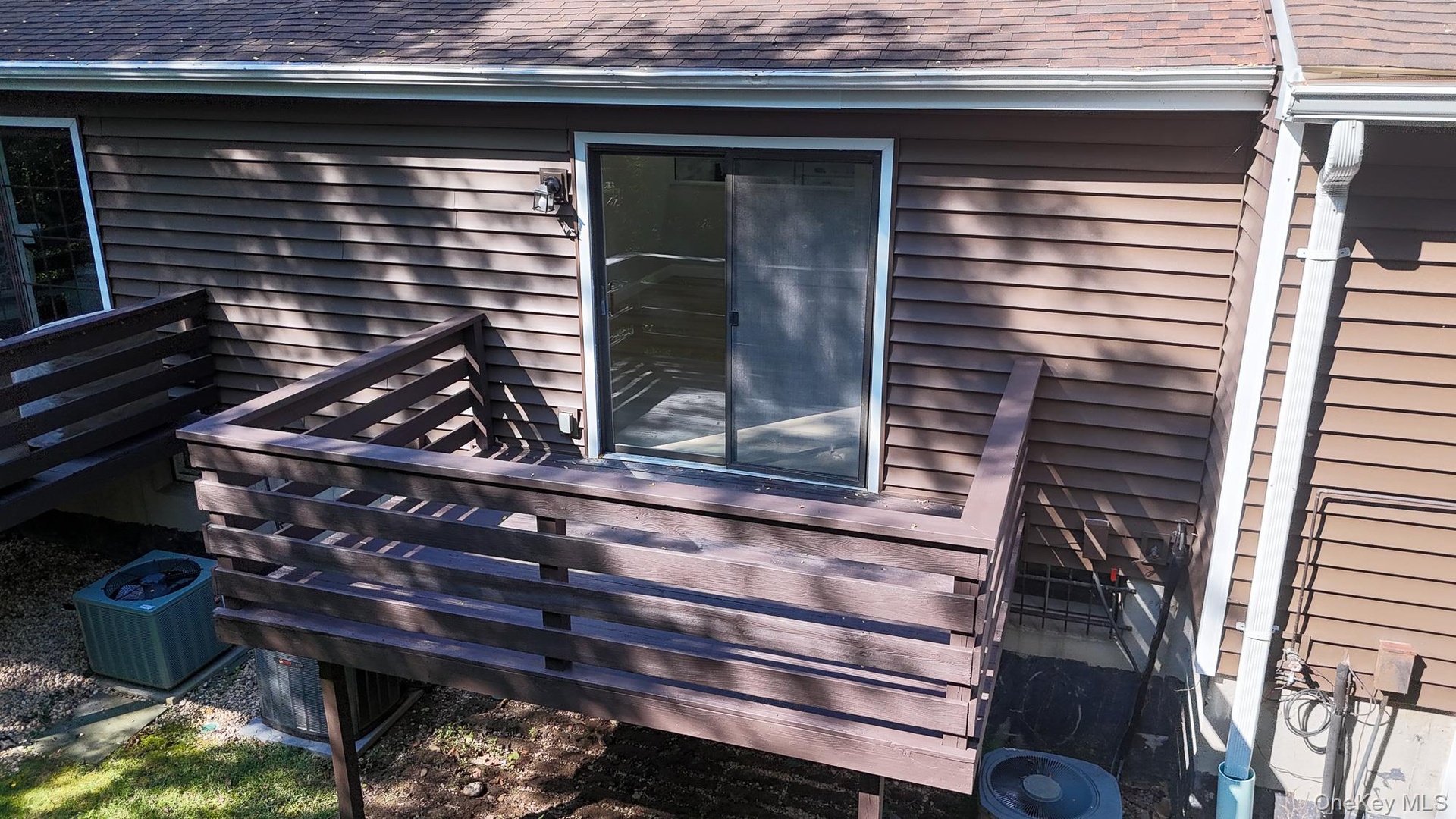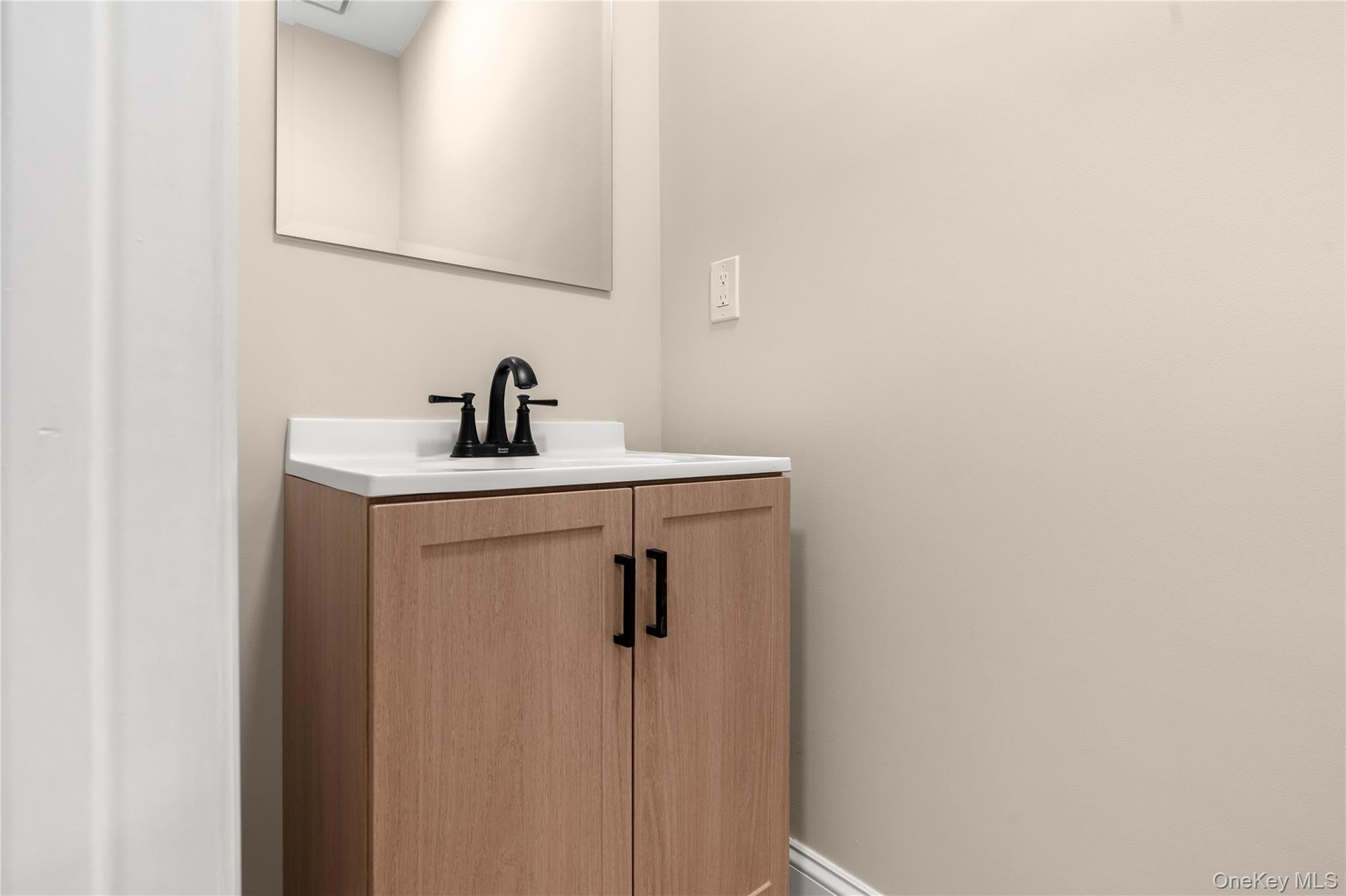 The open-concept living room/dining area features hardwood floors and sliding glass doors that lead to a private back deck—ideal for relaxing or outdoor dining. A stylish new half-bath completes this main level.
