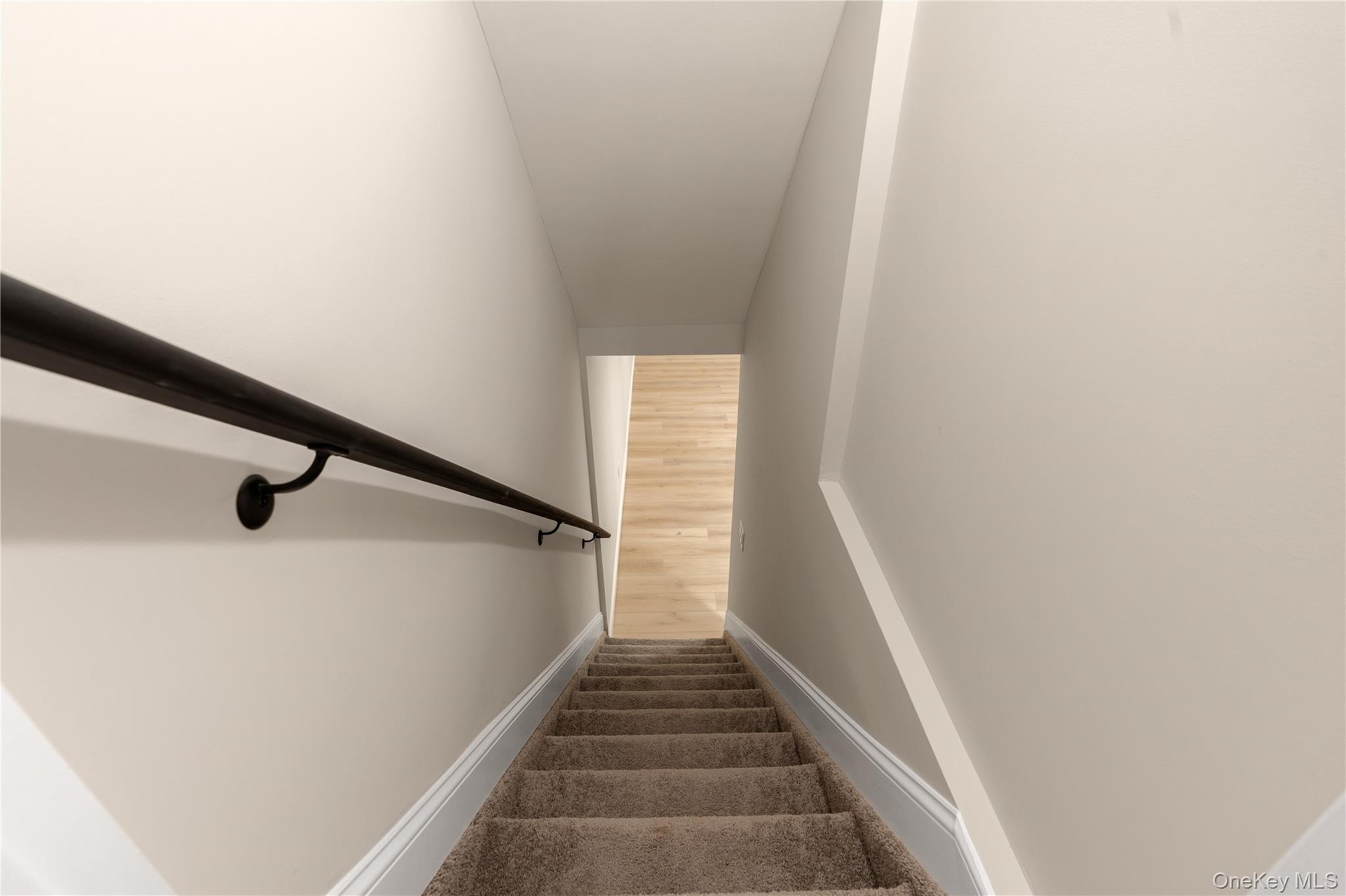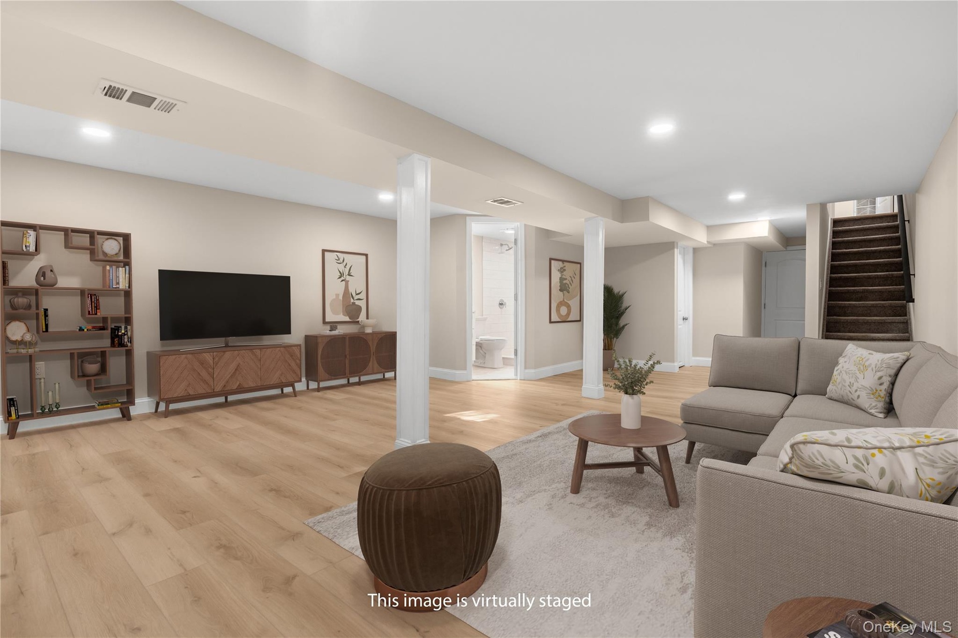 - Finished below grade area featuring light wood-style floors, recessed lighting, and stairway