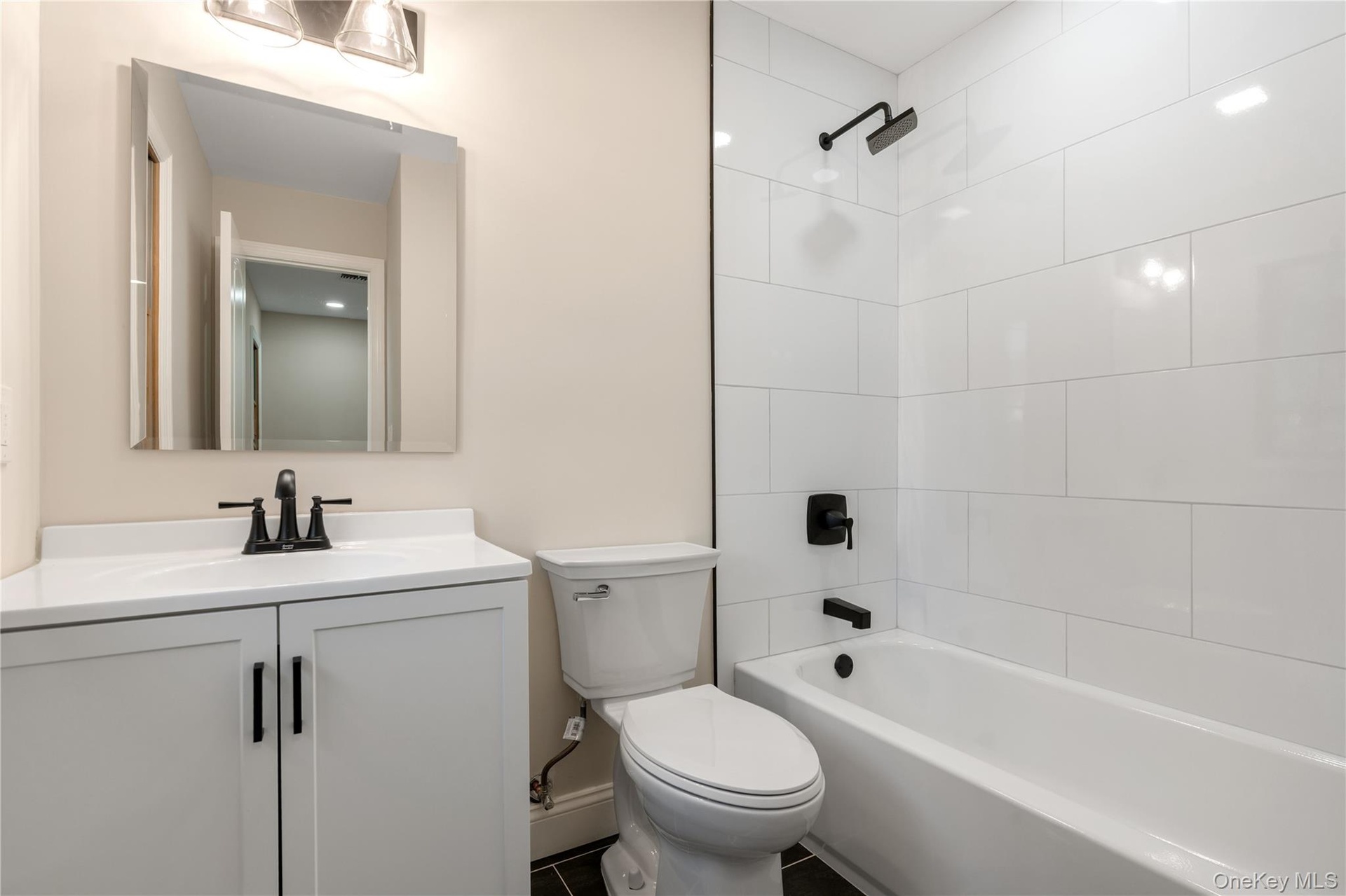 Upstairs, there’s two bedrooms, including a primary bedroom with a walk-in closet and a luxurious en-suite bathroom featuring a separate soaking tub and stall shower. An additional full bathroom on this level includes dual sinks, a soaking tub, and a separate shower. A dedicated laundry area with washer/dryer is conveniently located on this upper level.
