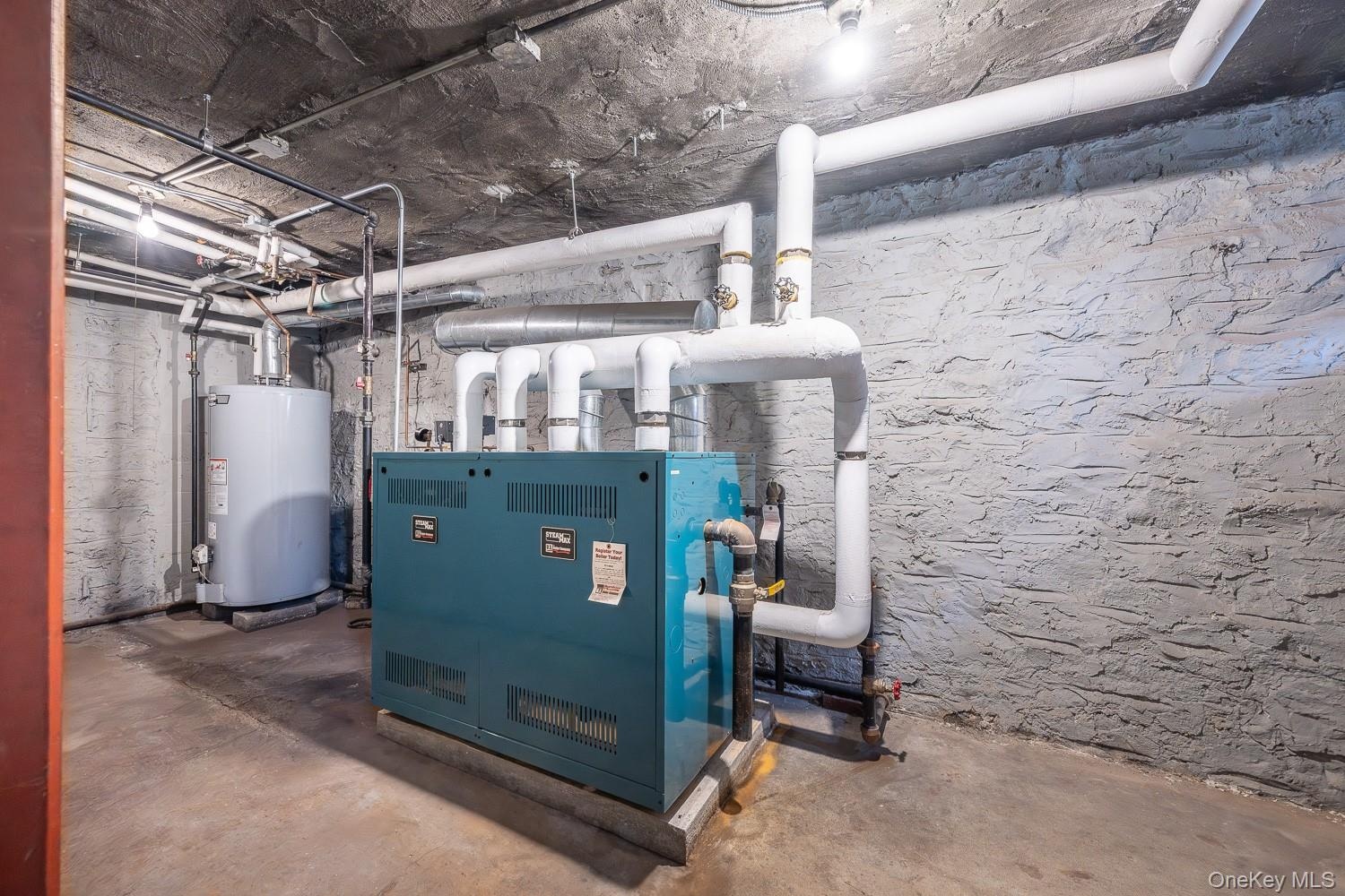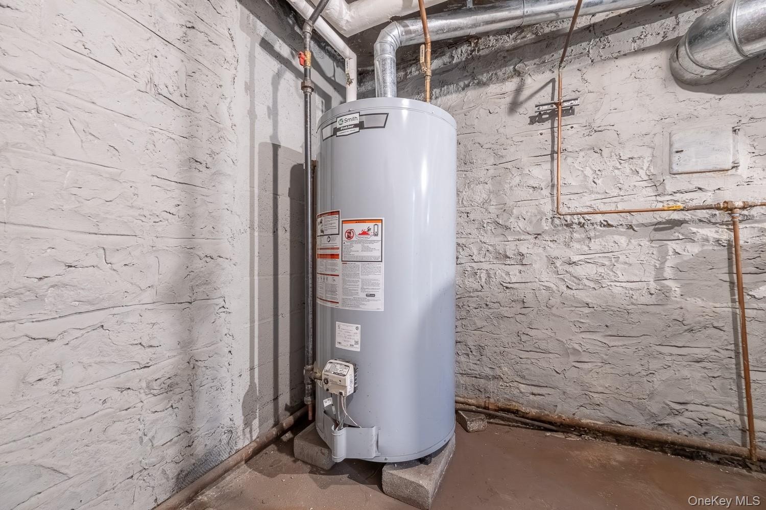 - Utilities featuring gas water heater and a heating unit