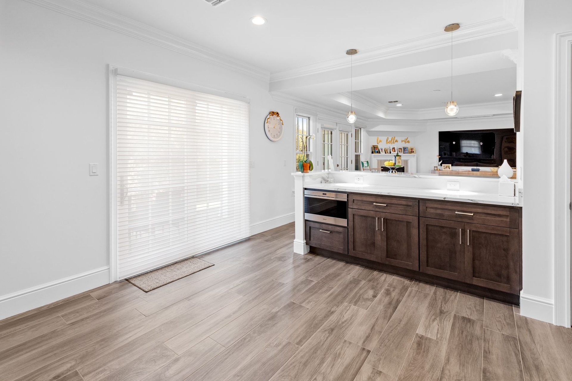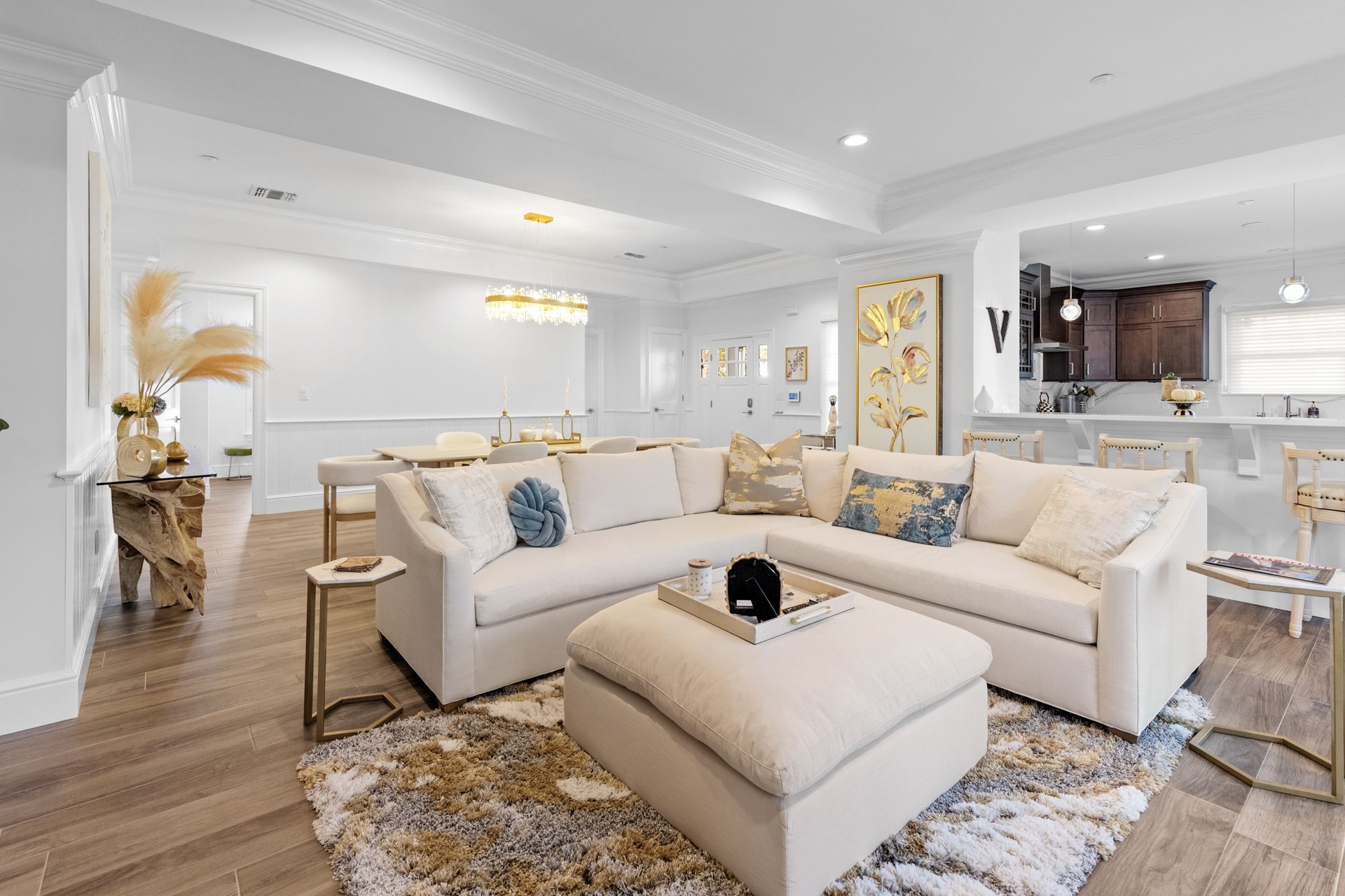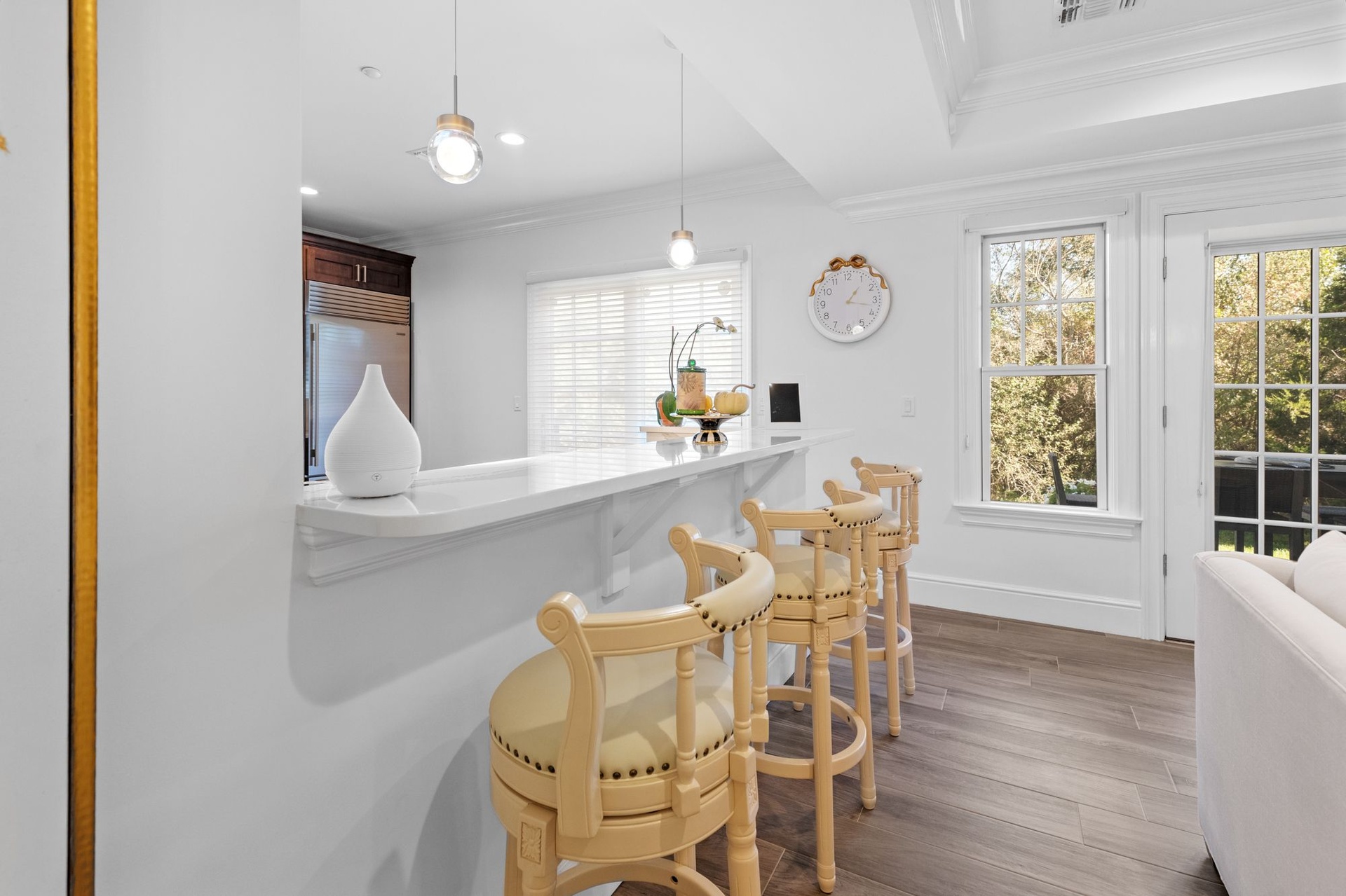 Step inside to a thoughtfully laid-out open floor plan, showcasing engineered floors, refined woodworking, and detailed moldings throughout. The chef's kitchen is a standout, featuring Quartz countertops, ____stainless gas range, ______refrigerator, _____dishwasher, _____microwave, _____washer and dryer, and a cozy breakfast bar—ideal for entertaining or relaxing after a day on the course.