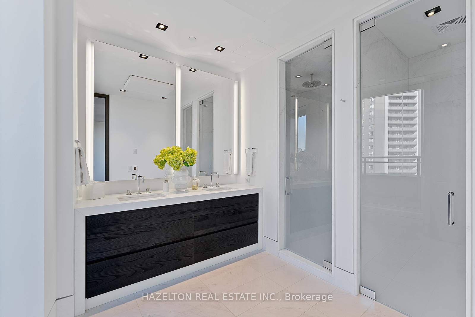 The pinnacle of luxury living in a truly unique Penthouse, occupying the entire floor of an intimate boutique condominium building in Yorkville. This spectacular residence boasts fabulous panoramic views in every direction, offering a breathtaking perspective of the city skyline and the lush tree-lined streets below. Floor-to-ceiling windows bathe each room in natural light, with multiple balconies and terraces. Every detail has been meticulously curated and finished to the highest conceivable standard. Two direct elevators open directly into the private marble foyer . From custom millwork, premium heated stone floors with inlays, and designer lighting to smart home automation and premium architectural detail, this penthouse showcases uncompromising quality and sophistication. Simply exceptional entertaining spaces with a wonderful grand sized 'great room' ,a wine lounge, even a separate gallery area. Ownership includes a separate one bedroom guest/nanny/office suite, accessed through a private elevator. Incredibly generous primary bedroom occupies an entire wing with TWO decadent marble ensuites and TWO fitted dressing rooms, and two more well sized bedrooms with their own ensuites and walk in closets. Plus a private rooftop terrace with outdoor kitchen and entertaining area with a gas fire table and outdoor TV. This is perfect blend of privacy, exclusivity, and convenience, with direct elevator access to the residence, private terraces, and ample space for both grand entertaining and tranquil relaxation. And Yorkville's renowned dining, shopping, and cultural amenities just steps away, this is a rare chance to own a signature home in the city's finest neighbourhood.
