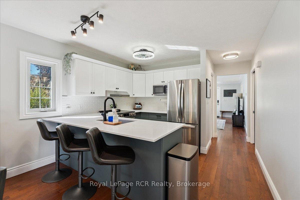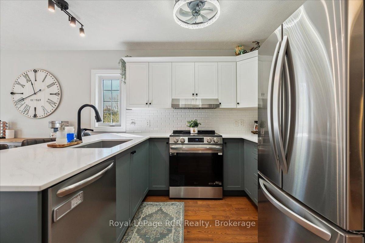 Welcome to this elegantly updated 2+1 bedroom, 2 bathroom bungalow with an attached 1-car garage, tucked away on Owen Sound's desirable west side. Blending timeless design with modern sophistication, this home offers refined main floor living and a lifestyle of ease. At the heart of the home, the newly renovated kitchen (2024) showcases quartz countertops, stainless steel appliances, and an open-concept flow to the dining area, perfect for gathering and entertaining. From the dining space, step through the walk-out to a brand-new deck (2025) overlooking a beautifully landscaped, fully fenced backyard, a private retreat designed for relaxation and style. The main level also features two generous bedrooms, a beautifully refreshed bathroom (2024), and a reimagined laundry room (2024) with direct access to the garage. Every detail has been thoughtfully considered for both function and luxury. The fully finished lower level expands the living space with a third bedroom, a stylish 3-piece bathroom, a spacious family room, and a utility area complete with a convenient walk-up to the garage. With a new roof (2023) and extensive updates throughout, this home offers peace of mind and a polished, move-in-ready experience. Perfectly positioned near Kelso Beach, walking trails, and west side amenities, this residence invites you to enjoy elegant, effortless living in one of Owen Sound's most sought-after neighbourhoods.