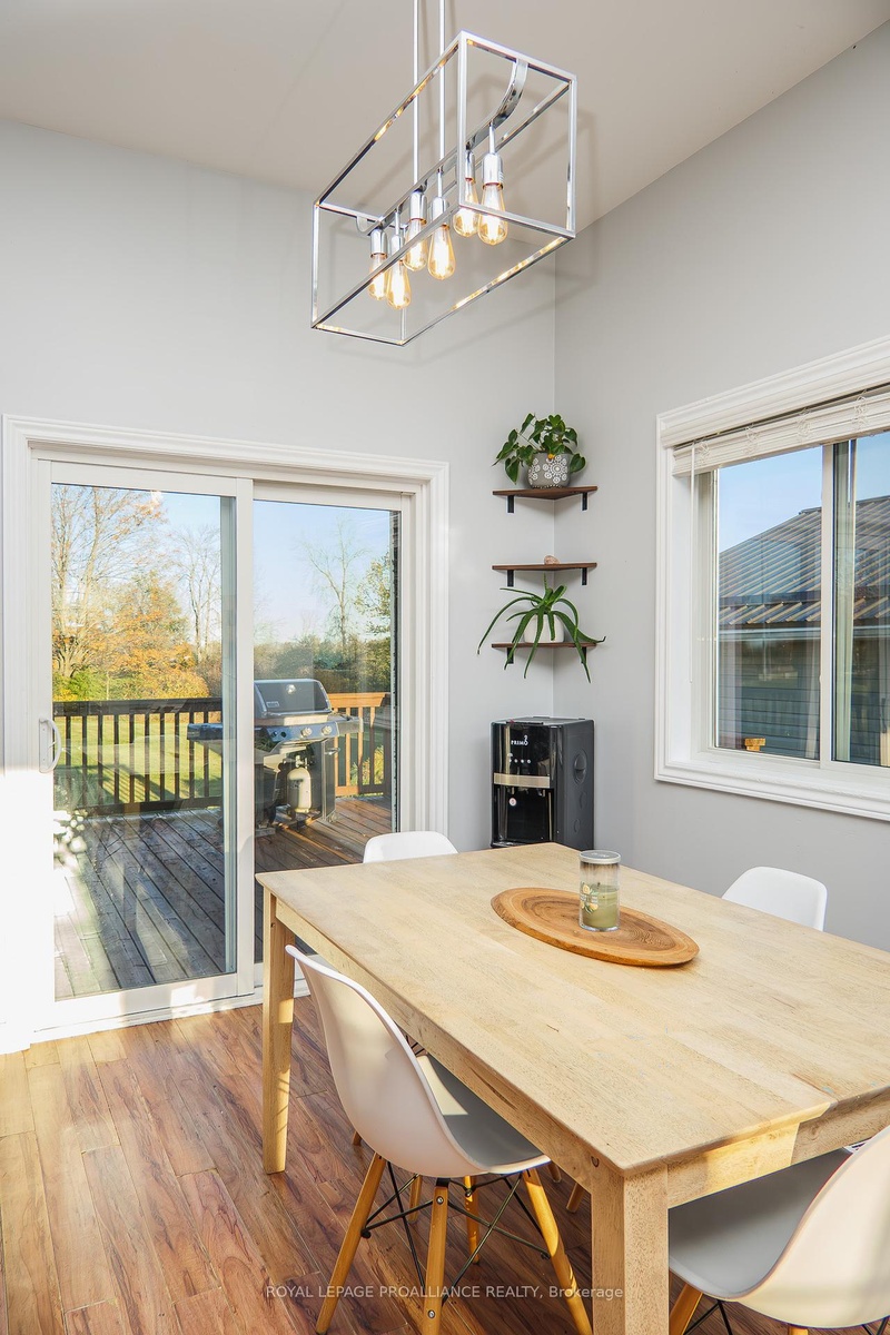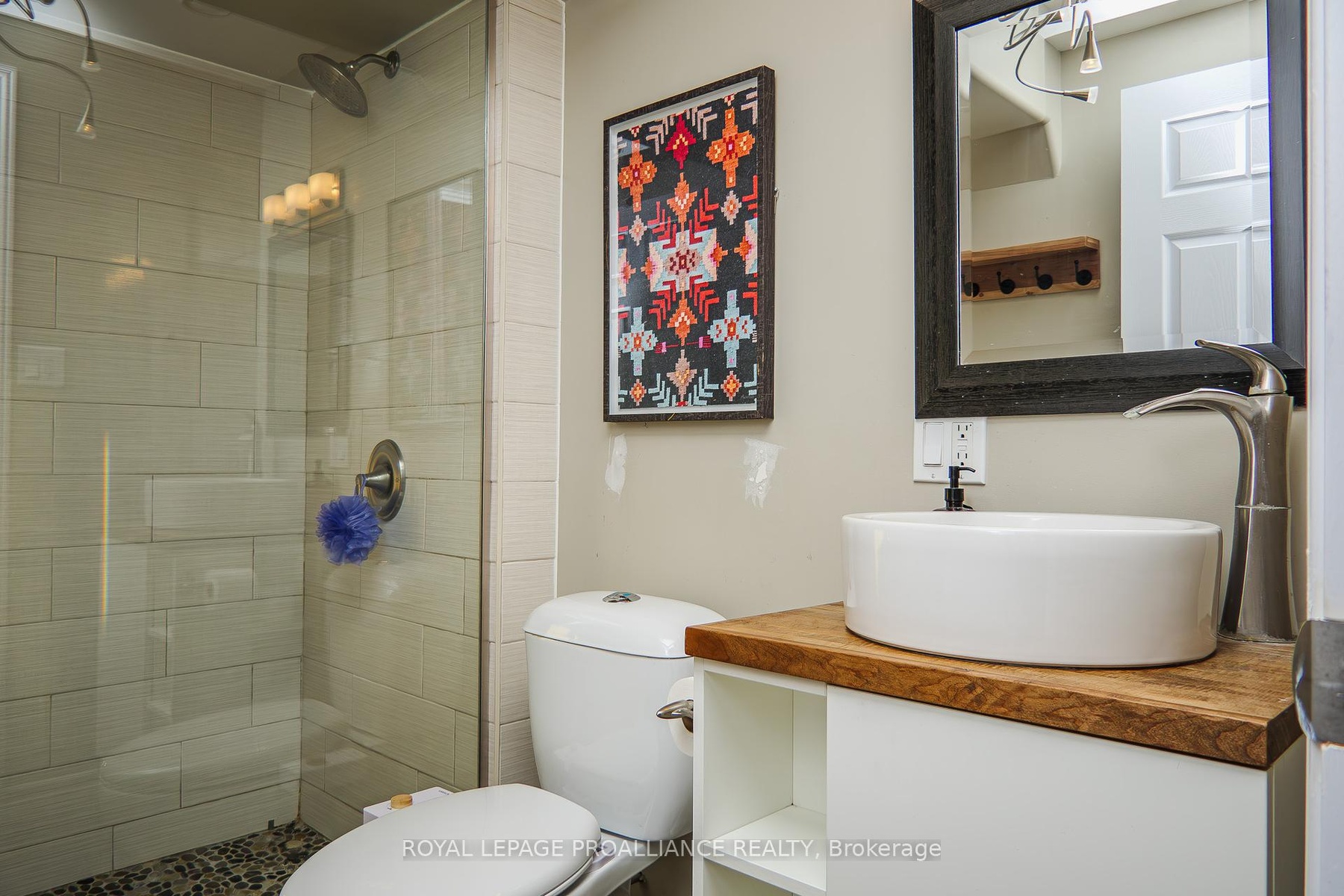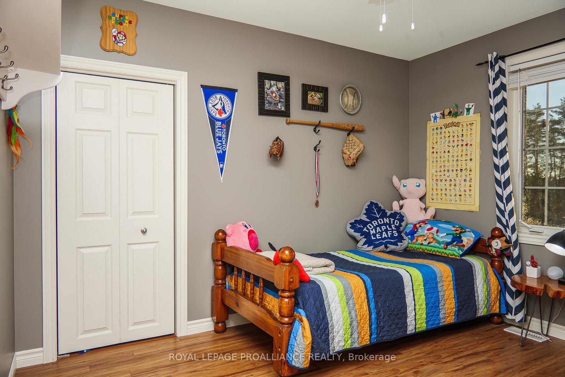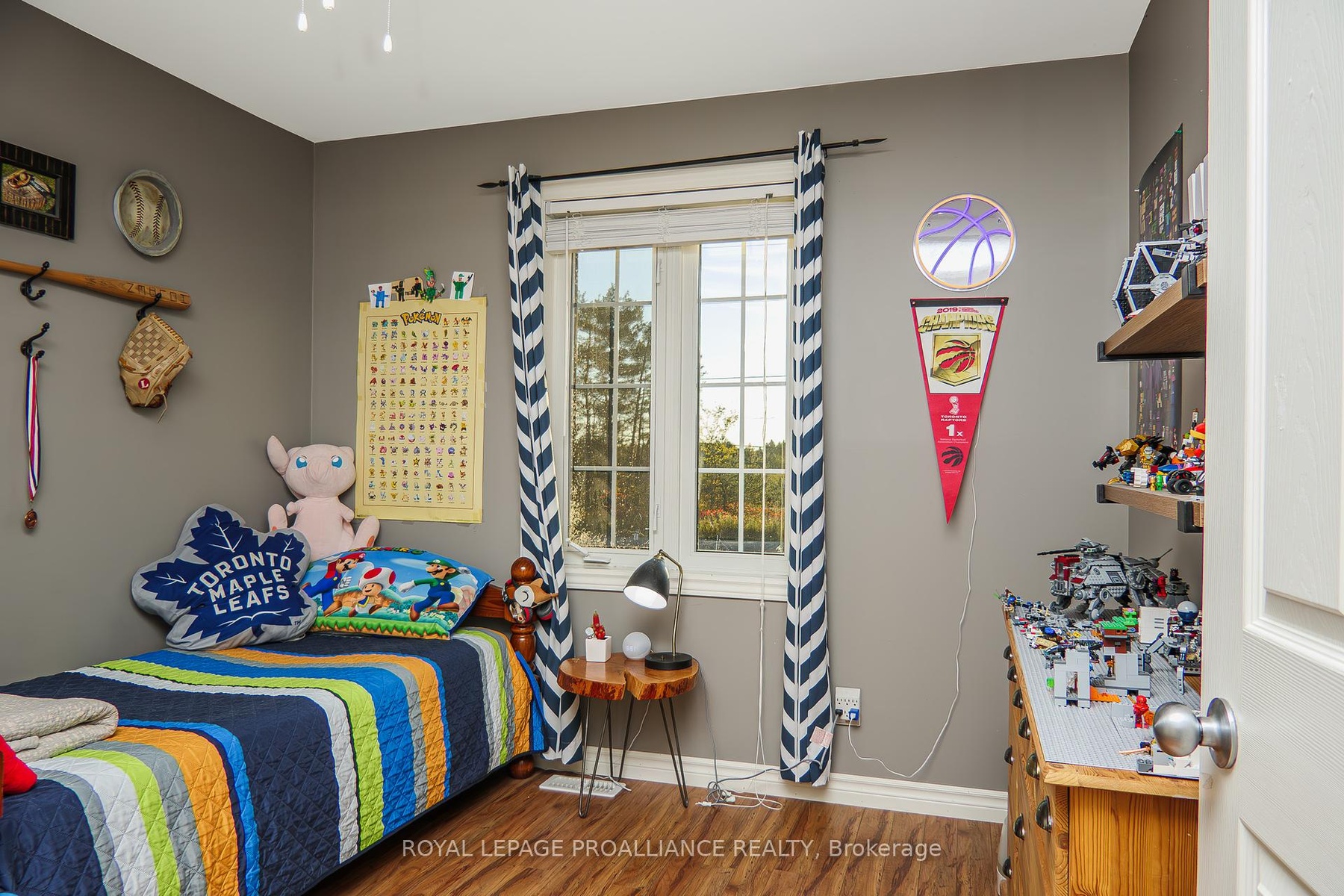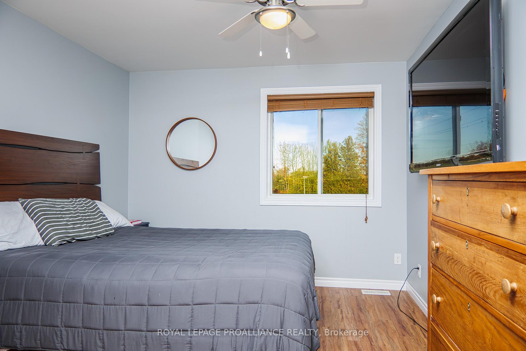 Country stunner! This 2010-built sidesplit is situated on a pretty 1+ acre lot on the border of Thurlow Ward & Centre Hastings. Under 20 minutes to Hwy 401 & the Belleville Quinte Mall & only 11 minutes to Tweed for the perfect blend of privacy & convenience. Situated on the property is a large, detached dbl+ garage with hydro, measuring 25ft wide by 30ft deep. Both the garage & the home have an ultra-durable black metal roof & maint-free vinyl siding exterior. Step inside the home & you are greeted with 10ft ceilings on the main floor offering an open, airy feel. Open concept main floor layout has living rm & dining area at the heart of it all, with laminate flooring & patio door to large rear deck, overlooking the private backyard. Functional U-shaped kitchen has attractive medium brown wood cabinetry, subway tile backsplash & stainless steel appliances included. The home is finished on 3 levels including 3 bedrooms on the upper level, all with laminate flooring & oversized windows. The main upper bath offers tile flooring, modern vanity, corner shower AND a corner soaker tub. The lower level is partially finished with a great L-shaped rec room/games room with vinyl plank flooring & built-in cabinets for extra storage. Laundry/utility room PLUS a convenient crawl space under the main level for additional storage. Rounding out the lower level is a 3pce. bathroom with glass and tile shower. Other features include: propane gas furnace, C/Air (2017), HRV Air Exchanger & water softener. Outside is a gardeners delight offering raised/boxed garden beds, storage shed, landscaped rear yard & mature trees out back. Conveniently located near main highways as well as several schools close by. Excellent combination of space, amenities, storage & privacy in an attractive, well-maintained home.--