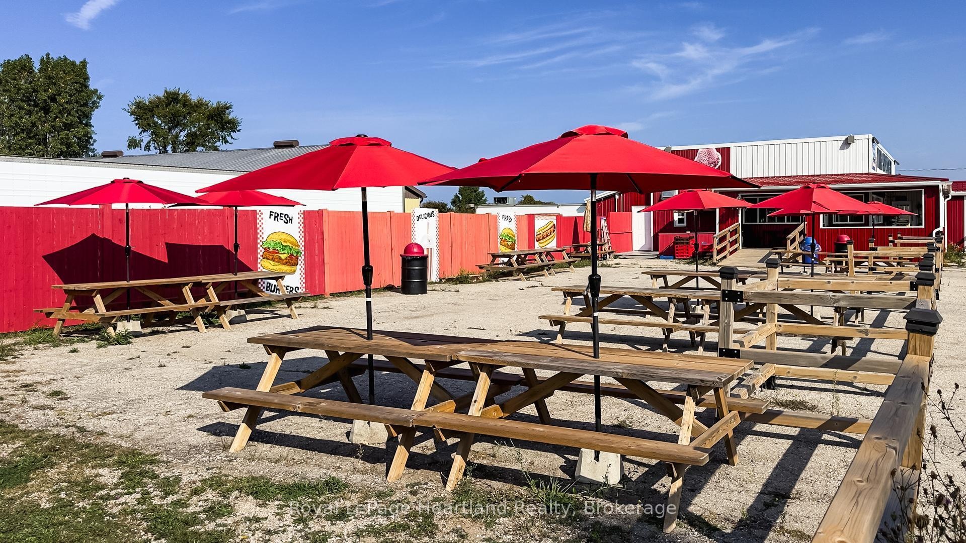 Welcome to The Station, a one-of-a-kind restaurant opportunity located just outside of Goderich, known as Canadas prettiest town. Sitting on 2.87 acres with highway frontage and adjacent to the Goderich Airport, this property is perfectly positioned as a fly-in breakfast and lunch destination while also being just minutes from Lake Huron, Point Farms, and within biking distance to the G2G Trail. Already loved for serving some of the best smash burgers in the area, this spot draws locals, cottagers, and travelers alike. The restaurant offers plenty of seating options with 48 seats inside, 24 on the wrap-around veranda, and another 80 in the outdoor picnic field area. It is fully equipped with an industrial kitchen, prep area, refrigeration, walk-in cooler, POS system, and even an ice cream parlor, providing everything needed to keep operations running seamlessly. Beyond the restaurant, the property includes a 2-bedroom, 1-bath modular home - ideal for living on-site and enjoying the benefits of working from home. There is also a 40 x 60 shed with a concrete floor, gas, and water service, offering additional storage or workspace flexibility. With its prime location, established reputation, and versatile property features, The Station is a rare opportunity to invest in both a thriving business and a lifestyle.