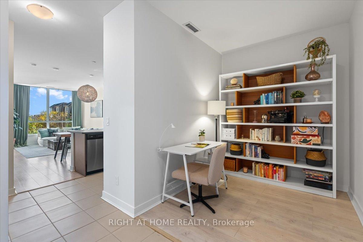 DescriptionWelcome to The Village by Main Station! This bright and well-designed 667 sq ft condo features 9 ft smooth ceilings (the only floor in the building with 9 ft ceilings), a large bedroom with a closet, and a generous den that can be used as a home office, guest room, nursery, or spare bedroom. The open-concept living area flows onto an east-facing balcony with great quiet views. The modern kitchen comes with full-size stainless steel appliances and plenty of storage. Enjoy the convenience of in-suite laundry and fresh updates throughout. This well-managed building offers excellent amenities: a rooftop patio with BBQs and skyline view, fitness centre, party room, bike storage, and visitor parking. This building also features excellent soundproofing between units. Located steps from Main Subway and Danforth GO, you'll have quick access downtown, to the Beaches, Leslieville, or Greektown. You really don't need a car here. Walk to shops, cafes, parks, and all that Danforth Village has to offer. Low maintenance fees and a vibrant community make this the perfect place to call home!Amenities- Bike Storage