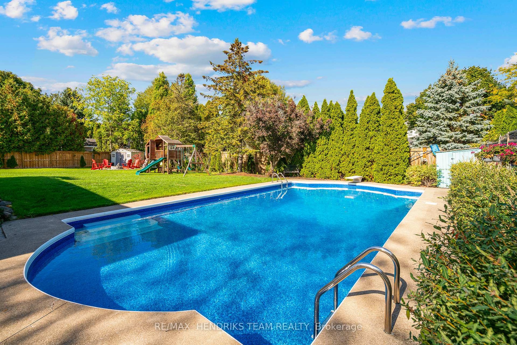 DescriptionNestled on a quiet cul-de-sac in the Village of Jordan, this family-friendly 3+2 bedroom, 3.5 bathroom home sits on a big pie-shaped lot, offering the perfect balance of space, comfort, and function. With a total of 3,000 square feet of finished living space, its ideal for those who value both practicality and lifestyle. The main floor features a bright, flowing layout highlighted by a great room with vaulted ceilings that seamlessly combines the living and dining areas, creating an inviting hub for everyone to hang out in. The refreshed kitchen includes painted cabinetry, quartz countertops, a tiled backsplash, and stainless-steel appliances, blending style and usability. Adjacent is a cozy family room with a gas fireplace while a home office, 2 piece bath, and laundry room with access to the double car garage complete the main level. Upstairs, you'll find three bedrooms with new vinyl plank flooring just installed throughout. The primary bedroom features a 5 piece ensuite with a double-sink vanity, separate glass-enclosed shower, and freestanding soaker tub. The main 4 piece bath has been beautifully renovated. Downstairs, the finished lower level adds versatility with two additional bedrooms, a full bath and a spacious recreation area with a wood-burning fireplace - a perfect retreat for guests, teens, or extended family. Step outside from either of two sets of sliding patio doors to your private backyard retreat featuring a heated inground pool, hot tub, and lounging and firepit areas - all surrounded by mature trees and generous lawn space for kids to run and play! Located in one of the Town of Lincolns most desirable neighbourhoods that backs onto the Bruce Trail, you'll enjoy being close to Jordan's charming shops, wineries, restaurants, and the beloved Balls Falls Conservation Area - all while just a 10 minute drive to the city. A picture-perfect place to raise your family - you'll love it here!Virtual Tour: https://youtu.be/1ubgDed6RbIAmenities- Auto Garage Door Remote