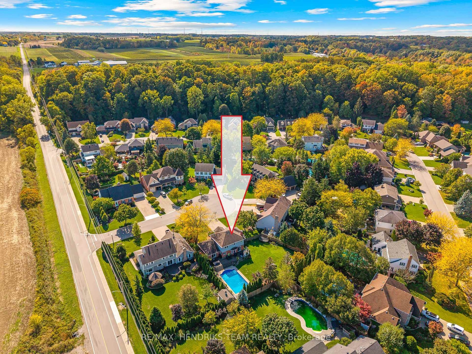 Nestled on a quiet cul-de-sac in the Village of Jordan, this family-friendly 3+2 bedroom, 3.5 bathroom home sits on a big pie-shaped lot, offering the perfect balance of space, comfort, and function. With a total of 3,000 square feet of finished living space, its ideal for those who value both practicality and lifestyle. The main floor features a bright, flowing layout highlighted by a great room with vaulted ceilings that seamlessly combines the living and dining areas, creating an inviting hub for everyone to hang out in. The refreshed kitchen includes painted cabinetry, quartz countertops, a tiled backsplash, and stainless-steel appliances, blending style and usability. Adjacent is a cozy family room with a gas fireplace while a home office, 2 piece bath, and laundry room with access to the double car garage complete the main level. Upstairs, you'll find three bedrooms with new vinyl plank flooring just installed throughout. The primary bedroom features a 5 piece ensuite with a double-sink vanity, separate glass-enclosed shower, and freestanding soaker tub. The main 4 piece bath has been beautifully renovated. Downstairs, the finished lower level adds versatility with two additional bedrooms, a full bath and a spacious recreation area with a wood-burning fireplace - a perfect retreat for guests, teens, or extended family. Step outside from either of two sets of sliding patio doors to your private backyard retreat featuring a heated inground pool, hot tub, and lounging and firepit areas - all surrounded by mature trees and generous lawn space for kids to run and play! Located in one of the Town of Lincolns most desirable neighbourhoods that backs onto the Bruce Trail, you'll enjoy being close to Jordan's charming shops, wineries, restaurants, and the beloved Balls Falls Conservation Area - all while just a 10 minute drive to the city. A picture-perfect place to raise your family - you'll love it here!