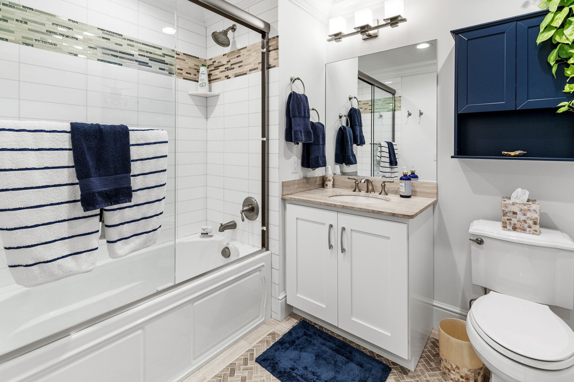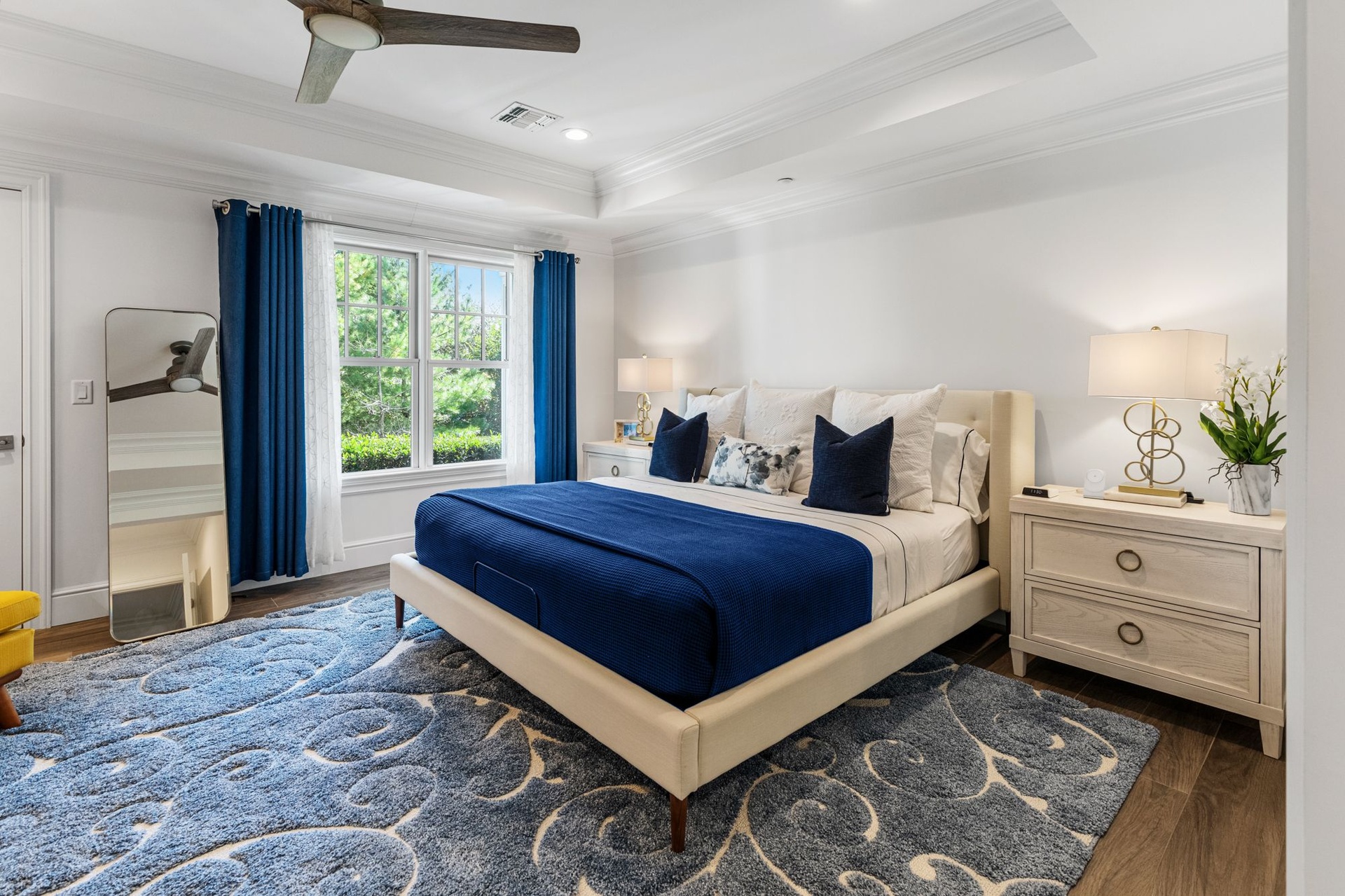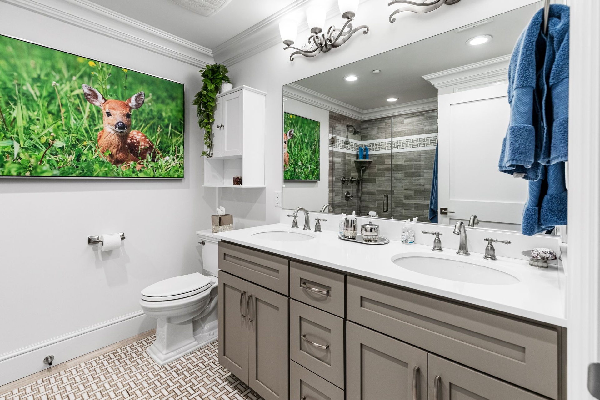 The chef’s kitchen features everything you need: Quartz countertops, Wolf stainless gas range, Sub-Zero refrigerator, Bosch dishwasher, Wolf microwave, Whirlpool washer and dryer and a breakfast bar—ideal for quick pre-round meals or post-golf cocktails.
