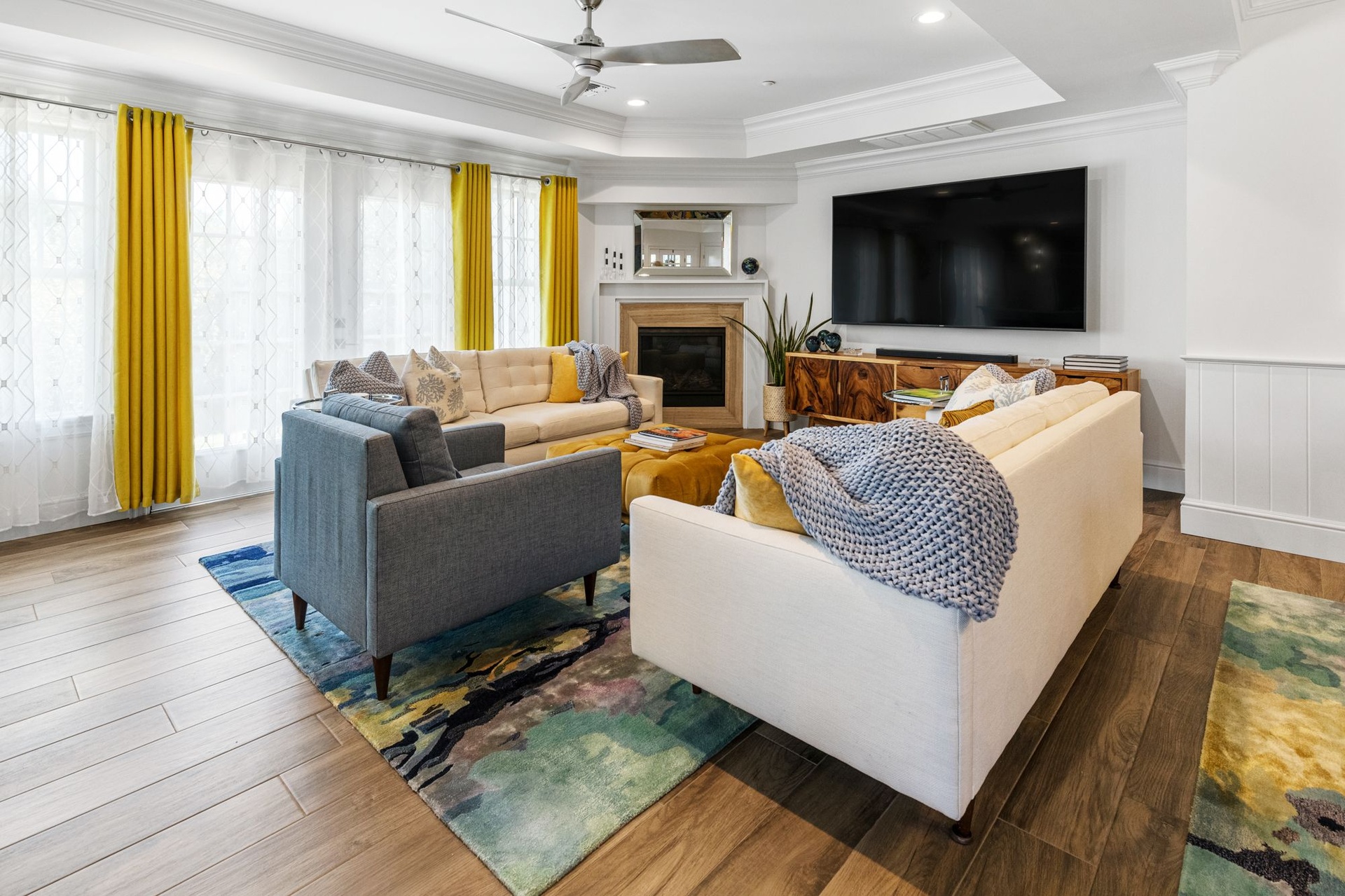 Residents have 24/7 access to a private clubhouse, fully outfitted with top-tier Cybex and Hoist fitness equipment, a welcoming lounge with a fireplace, large screen TV, full kitchen, and stunning views of a nearby nature reserve and the heated outdoor pool. Adjacent is a spacious grilling area for outdoor dining and entertaining.