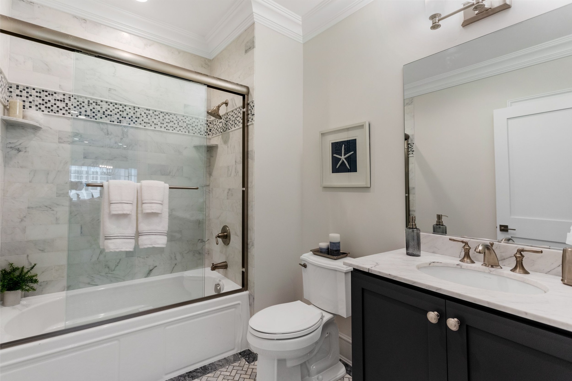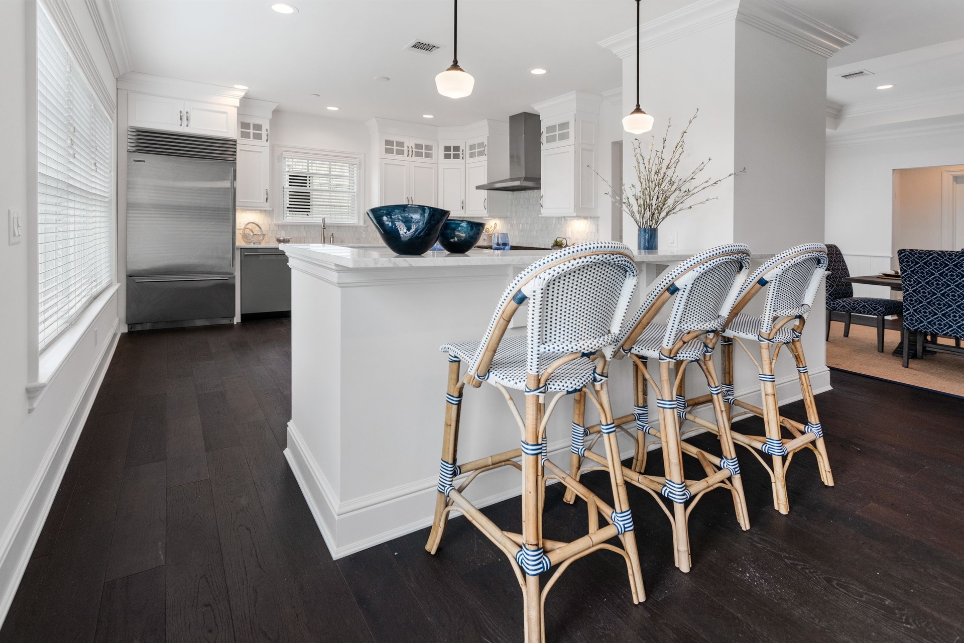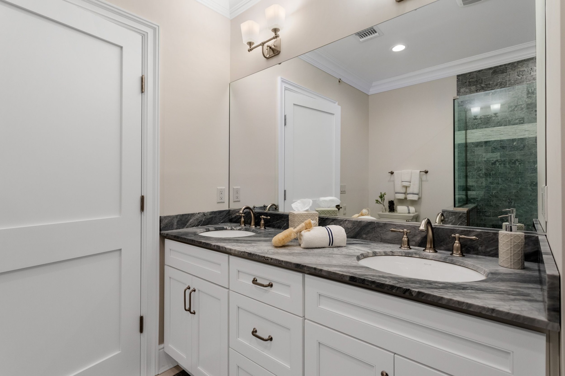 The chef’s kitchen features everything you need: Quartz countertops, Wolf stainless gas range, Sub-Zero refrigerator, Bosch dishwasher, Wolf microwave, Whirlpool washer and dryer and a breakfast bar—ideal for quick pre-round meals or post-golf cocktails.
