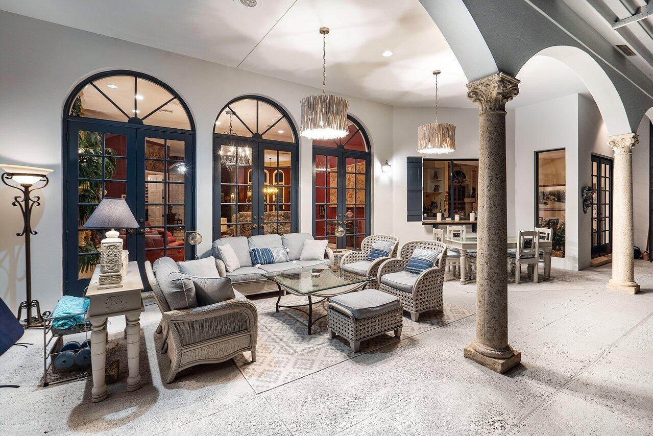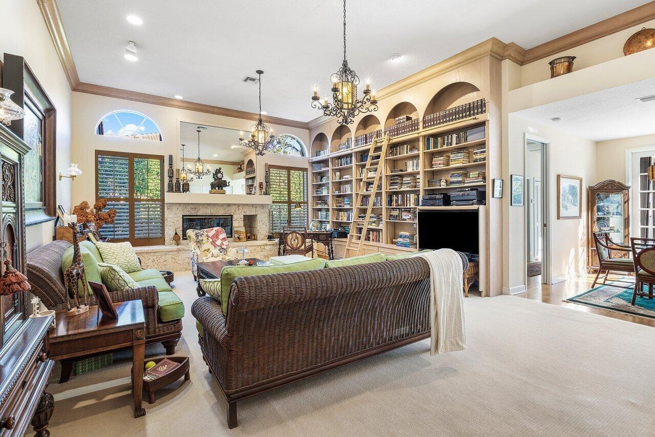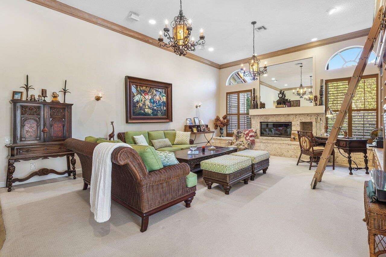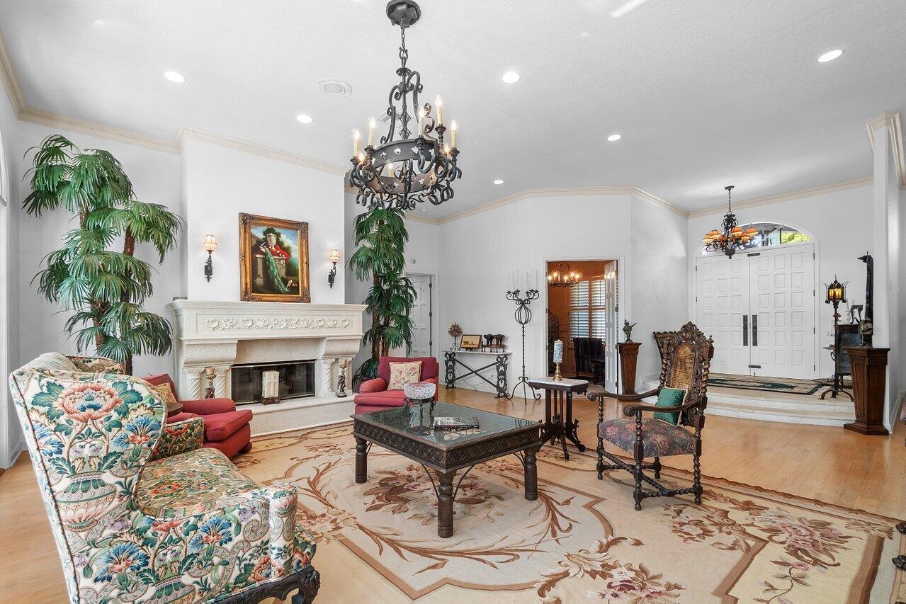 Nestled on a serene street within the prestigious Atlantis community, this meticulously maintained single-family home offers breathtaking views of the golf course. Boasting 3,607 square feet of living space, the home features 3 spacious bedrooms, 3.1 bathrooms, and a private den/office. Upon entering, guests are welcomed by a grand foyer that leads into a bright and airy living room, complete with floor-to-ceiling French doors that flood the space with natural light. A stunning wood-burning fireplace serves as the room's focal point, perfect for cozy evenings. The formal dining room, featuring a charming bay window, flows seamlessly into the open kitchen and breakfast area, which is ideal for casual dining.