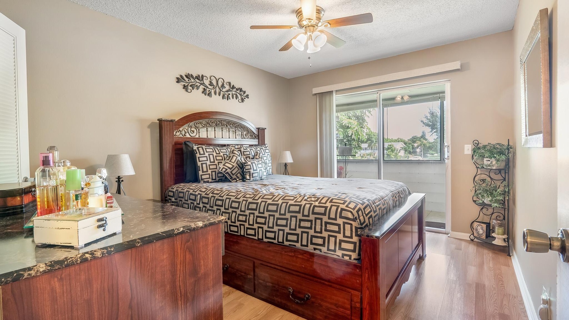 2 Bedroom, 1.5 Bathroom second-floor condo in Century Village, a 55+ community. Features include a new roof (2022), updated bathroom, accordion shutters, and a private balcony with a scenic view. The unit offers a spacious layout with ample natural light. Community amenities include a pool, fitness center, clubhouse, and more. Conveniently located near shopping, dining, and entertainment.