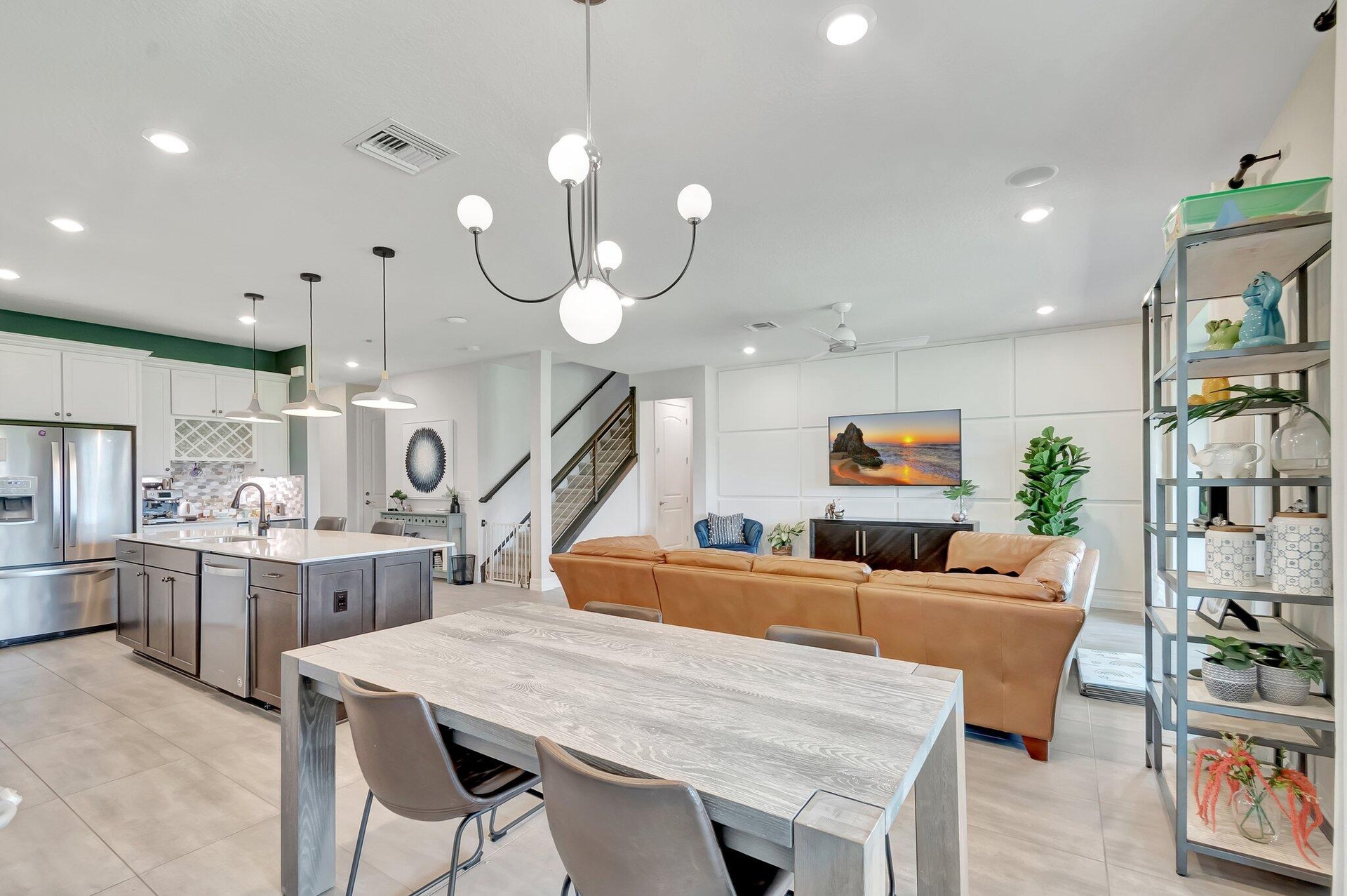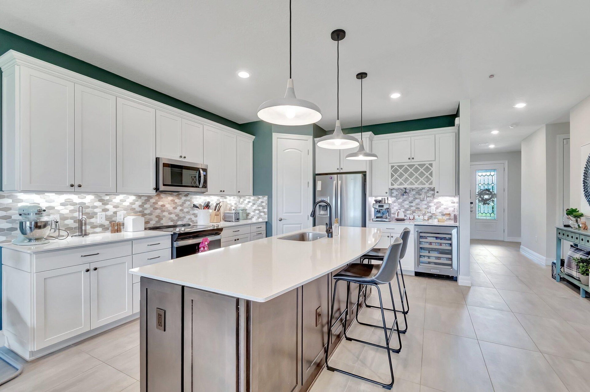 DescriptionFormerly the model home for the Citrus Grove model! Bought directly from the developer, this upgraded model home offers 5 bedrooms, 3 bathrooms, a spacious upstairs den, and countless high end features. With thousands in builder upgrades including custom feature walls, built-ins, a wine fridge, shiplap ceilings, stair railings, and designer lighting with upgraded chandelier and pendant fixtures. The oversized kitchen is a centerpiece, boasting quartz countertops, a stylish backsplash, and a massive island. On the main floor, you'll find two bedrooms and a full laundry room, with a 2 car garage. Upstairs includes three more bedrooms and a generously sized den, ideal as a home office or playroom. Step outside to a screened-in patio and take in the lake view from your fenced yard.