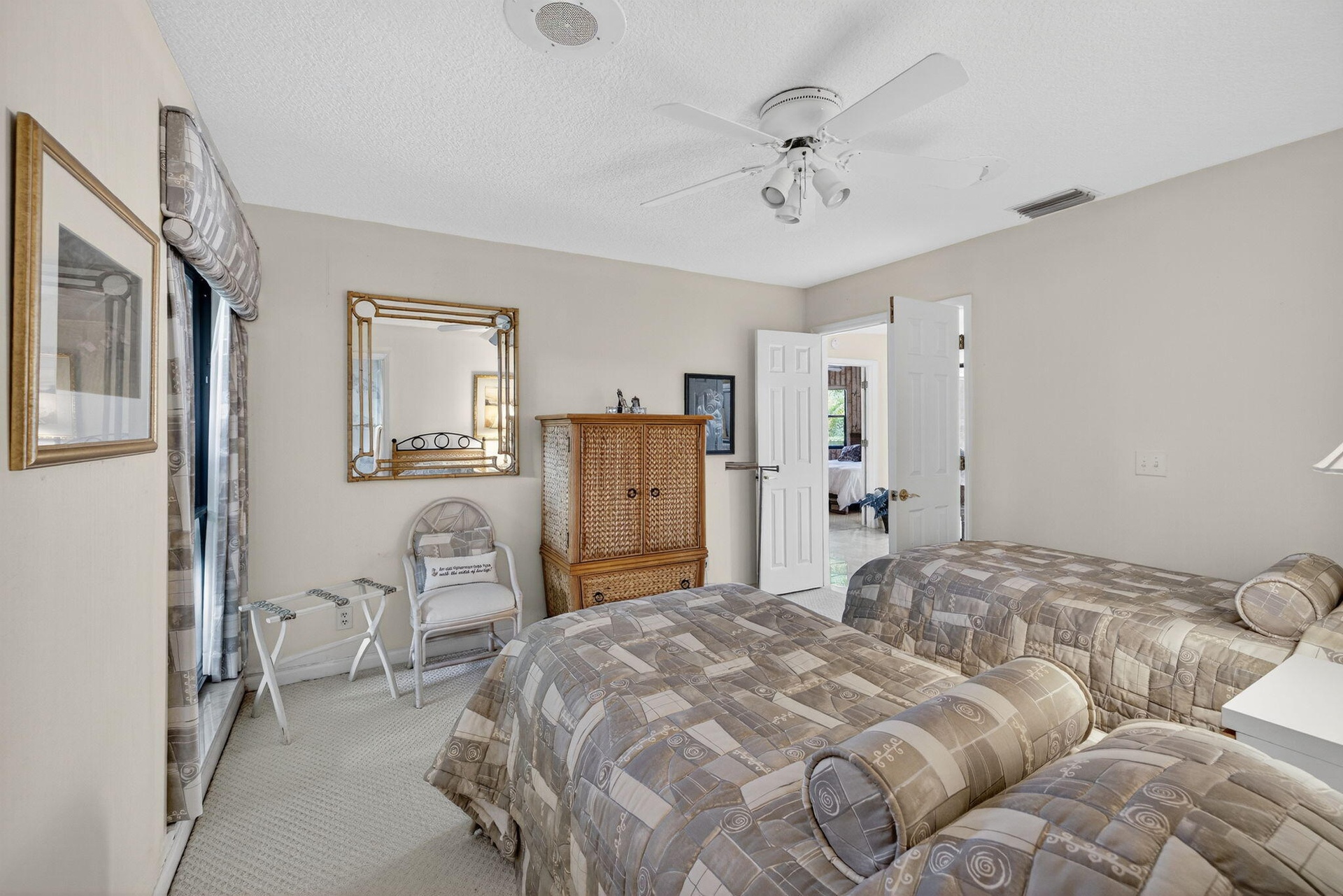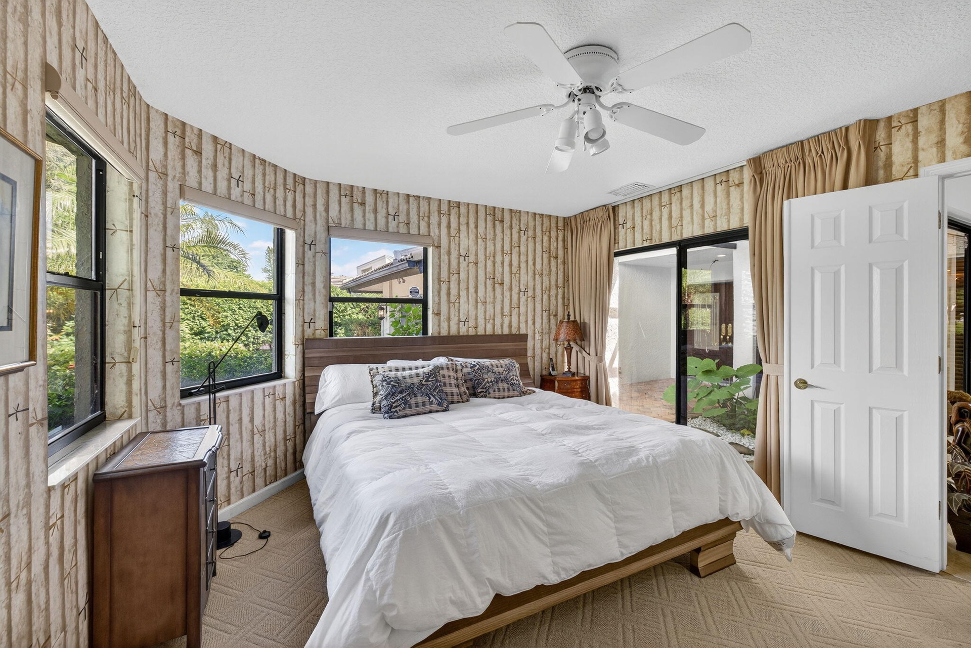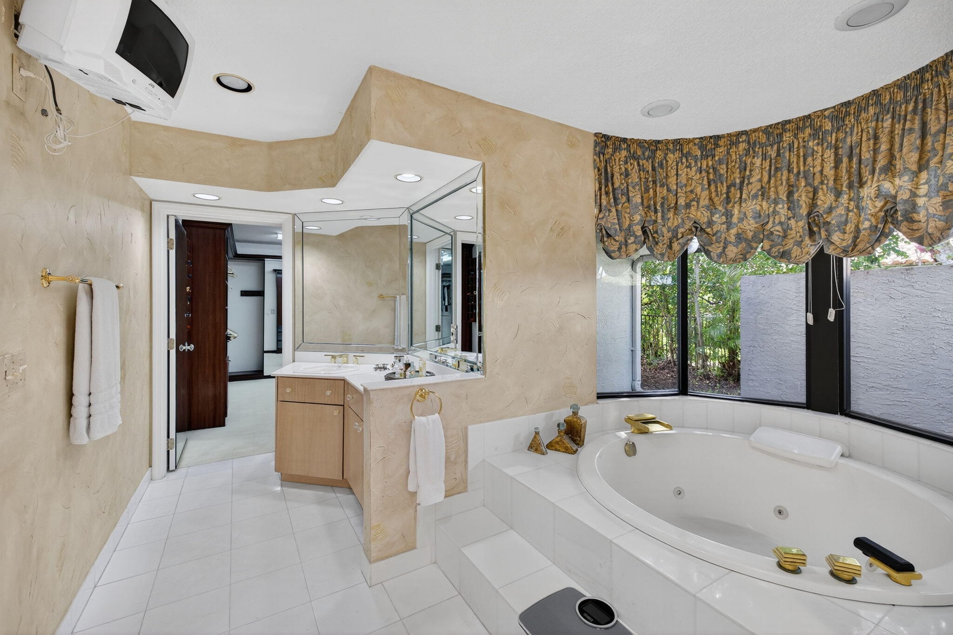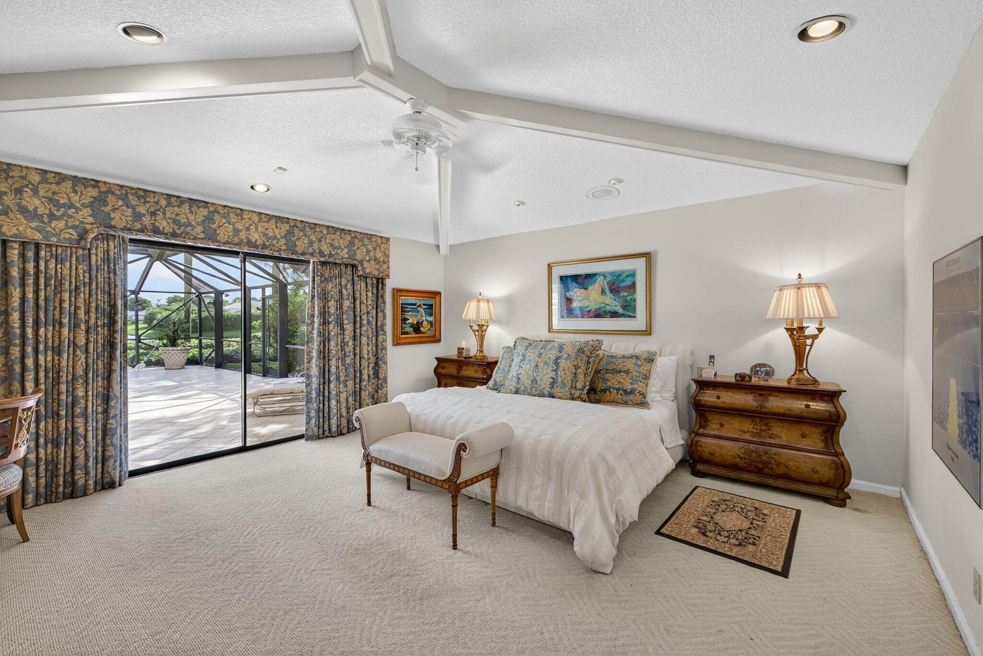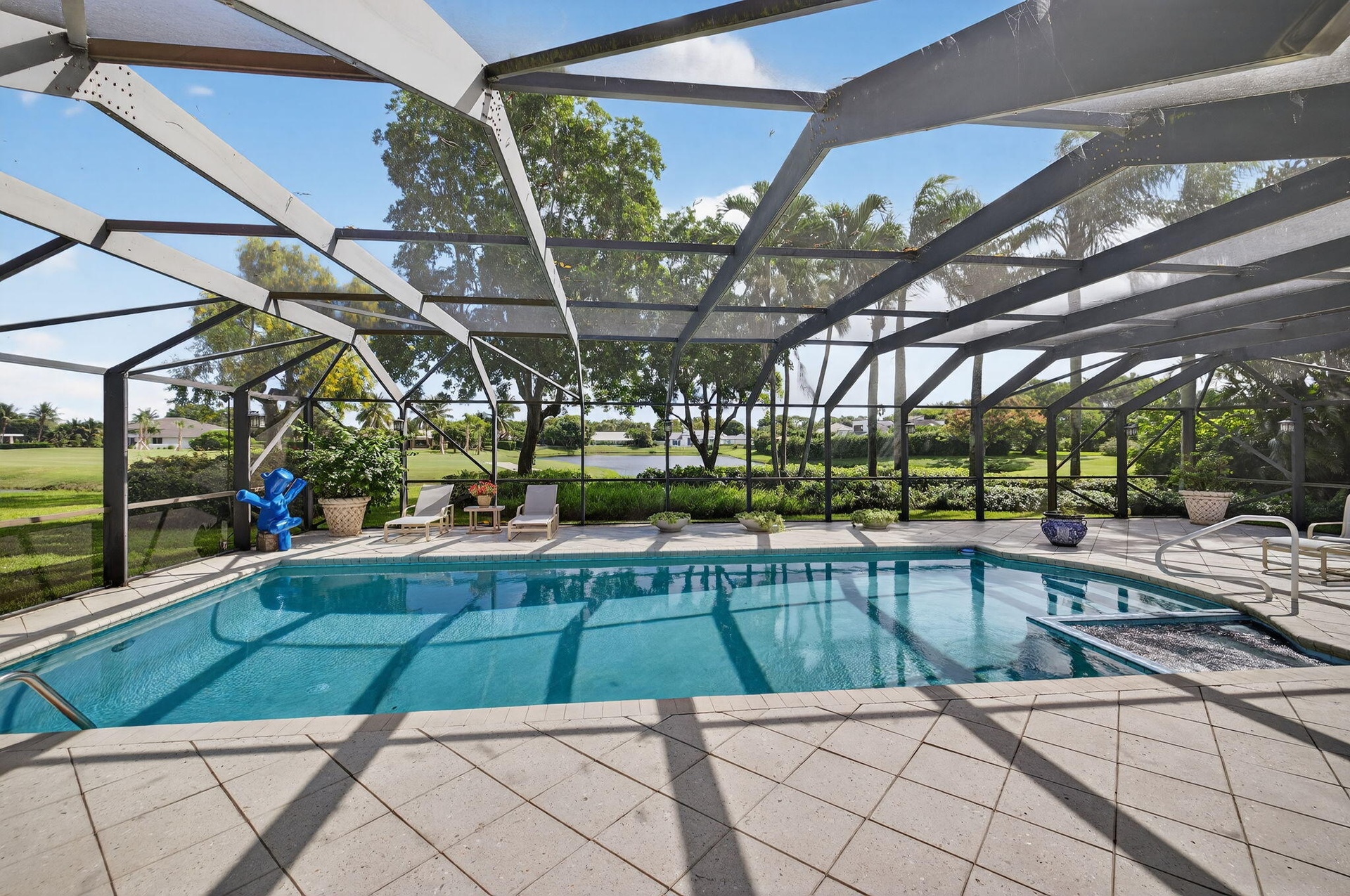 A beautiful Courtyard entrance and amazing 5 acre lake/golf views provide a most serene setting to this custom home set on 1/2 acre, with a perfect floor plan, boasting 3 bedrooms, an office that can provide a fourth sleeping space, 3.5 baths, formal dining and eat in kitchen. Master Suite includes large bedroom plus Steam shower and Jacuzzi Tub. Closets galore including enviable Master Closets. The magnificent pool, spa a deck provide an outdoor space for entertaining and personal enjoyment. A full house 26K generator with 500 gallon propane tank keep you cool and lighted if power outages occur.