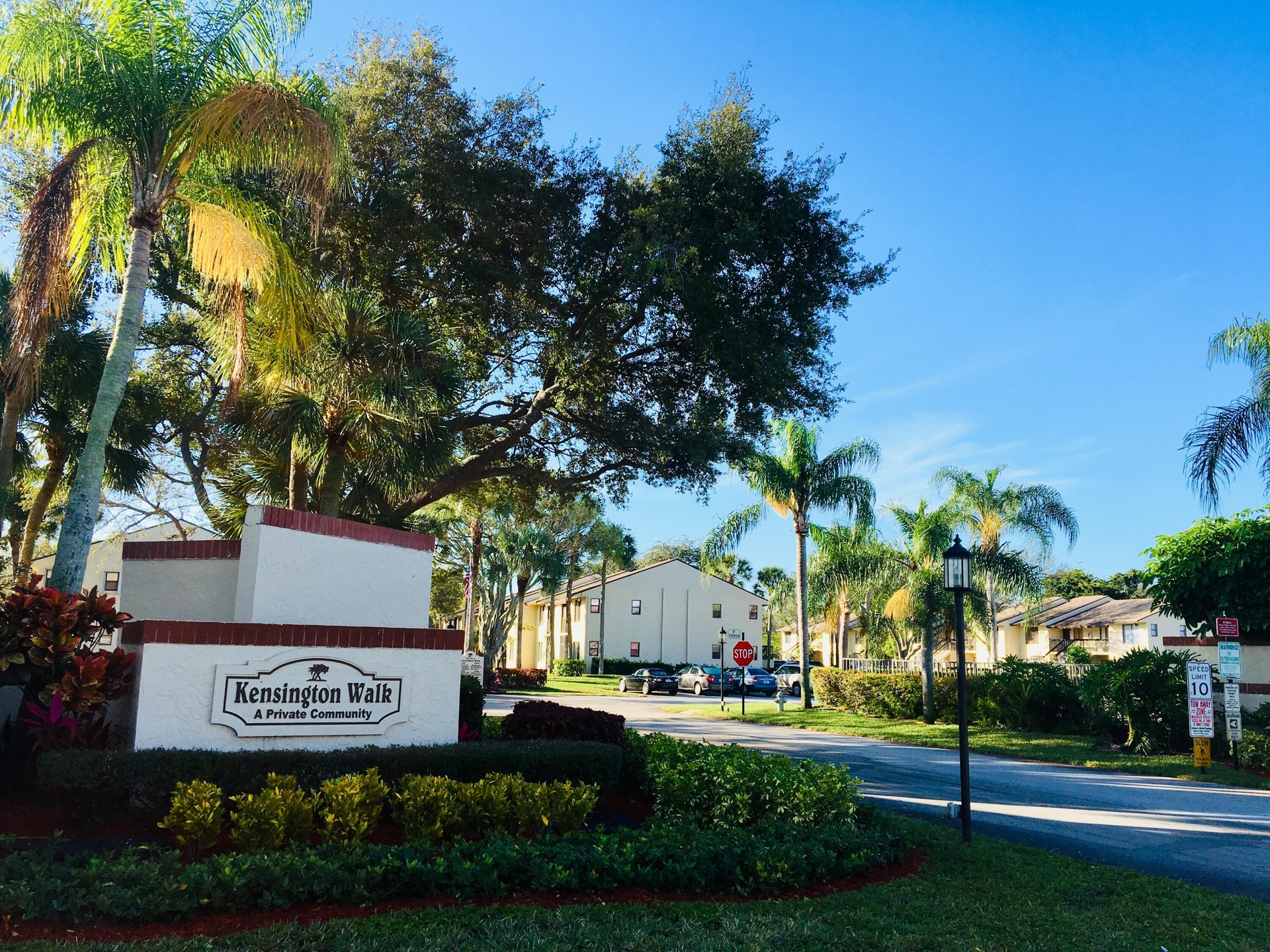 GREAT OPPORTUNITY IN CENTRAL BOCA RATON!Kensington Walk, one of Boca Raton's most desirable communities, located across from the YMCA and surrounded by top-rated A+ schools, beautiful parks, shops, restaurants, and major highways. This peaceful neighborhood offers a true Boca lifestyle with great amenities, including pool, tennis courts, clubhouse, and plenty of guest parking. Perfect for homeowners & investors. Rental allowed right after purchase, offering flexibility and income potential. The low HOA includes basic cable, water, and exterior maintenance. This corner unit offers extra windows for abundant natural light, a private screened balcony with lush garden views, and added privacy with no neighbor on one side. Tile throughout, large master walk-in closet, in-unit washer & dryer