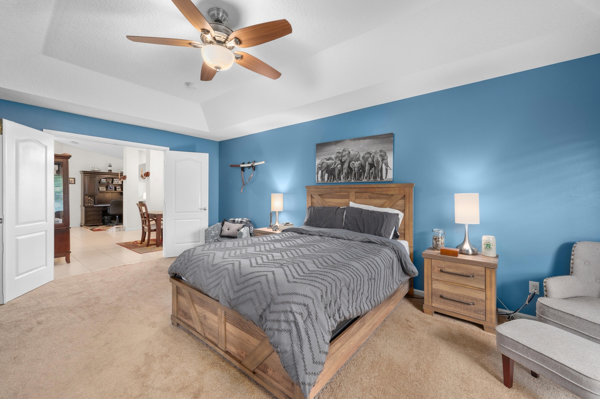 DescriptionBeautifully maintained 3-bedroom, 2-bath single-family home with volume ceilings, a split floor plan, and a spacious 2-car garage. The upgraded kitchen features stylish cabinetry, updated appliances, and Corian counters. The primary suite is huge and offers a tray ceiling, walk-in closet, and private en suite. Ceiling fans throughout add comfort, and a leased solar array keeps energy costs low. Step outside to a long screened lanai and enjoy the saltwater-chlorinated pool (also screened) perfect for entertaining or relaxing. Located in a quiet neighborhood close to schools, shopping, dining, I-95 and city parks, this home combines style, efficiency, sustainability and Florida living at its best. Don't miss out--schedule your showing today!