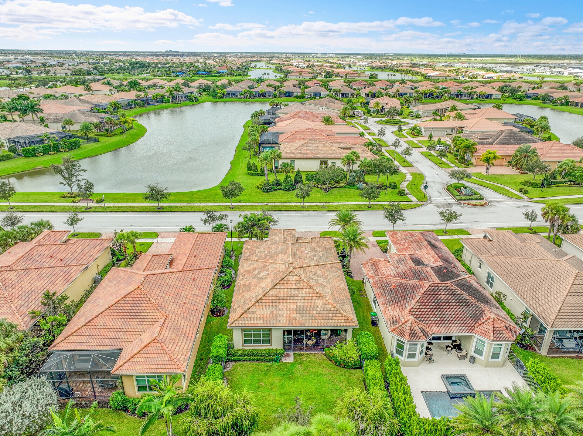 DescriptionThis sought-after Lago plan offers an exceptional open-concept design. Situated in the f PGA Verano community, the home boasts a fantastic location: directly across the street from a tranquil pond and backing up to a lush hedge that provides a peaceful buffer from the PGA golf course.The thoughtful layout features a spacious owner's suite with a large master bedroom and a functional den, conveniently located immediately off the foyer. Culinary enthusiasts will appreciate the dedicated pantry and the separate laundry room. The expansive living space flows seamlessly into a lovely screened-in patio at the rear of the house, where you can relax and enjoy the serene and private backyard setting. This home is an ideal blend of luxury, privacy, and convenience. Live the Verano Life Style today!