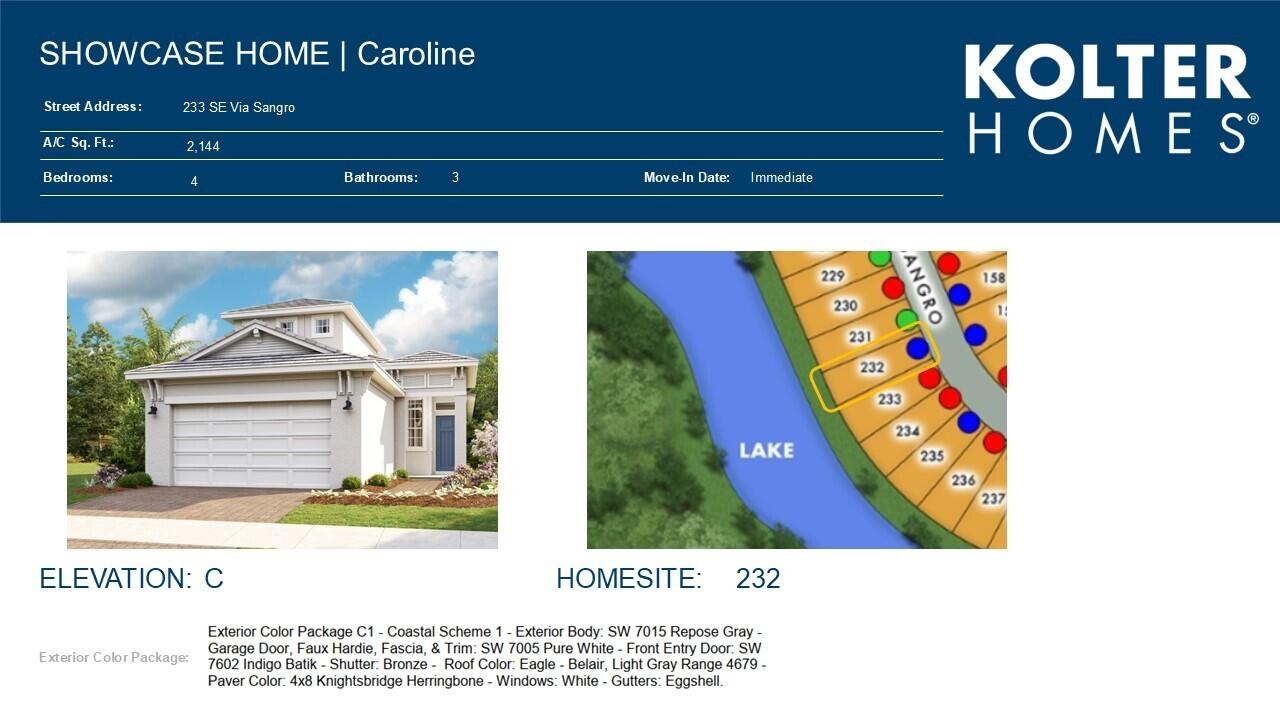New Construction This Lake view Coastal Elevation Caroline floorplan offers 3 Bedrooms Flex Room Bonus Room, 3 Baths, and an open concept design.