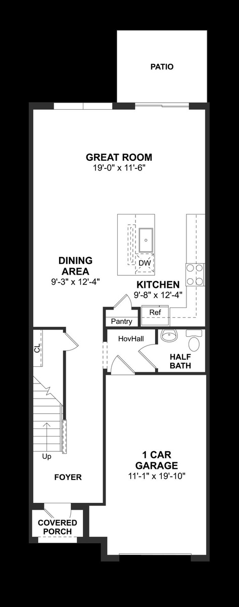 The Arabella II at Salerno Reserve Townhomes offers a gourmet kitchen featuring designer cabinetry and a center island, perfectly suited for meal prep and entertaining.