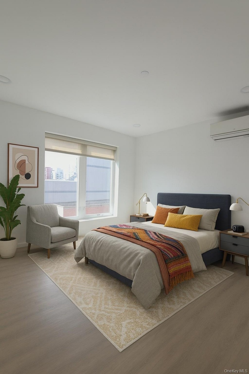 - Virtually staged bedroom with modern appliances and decor
