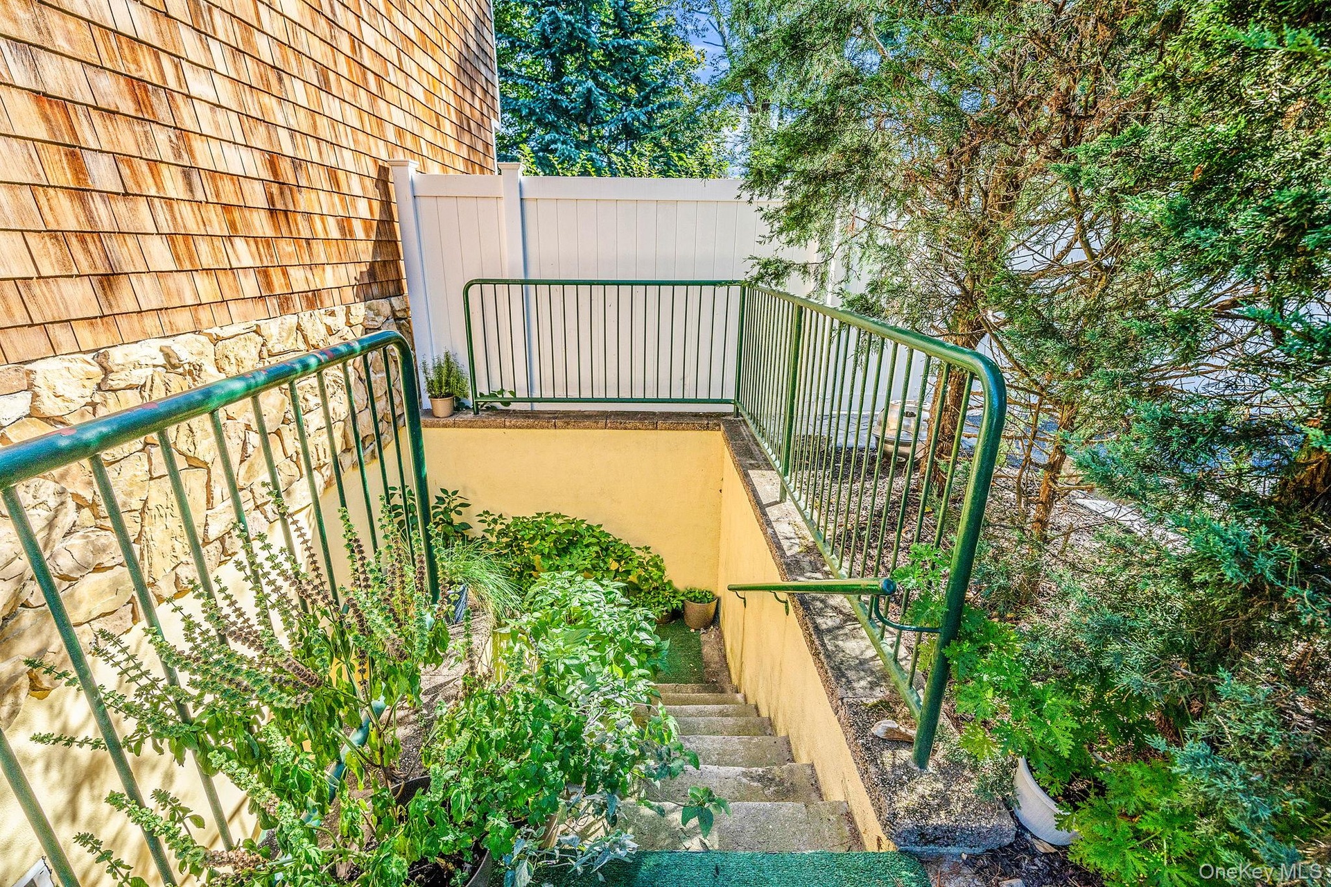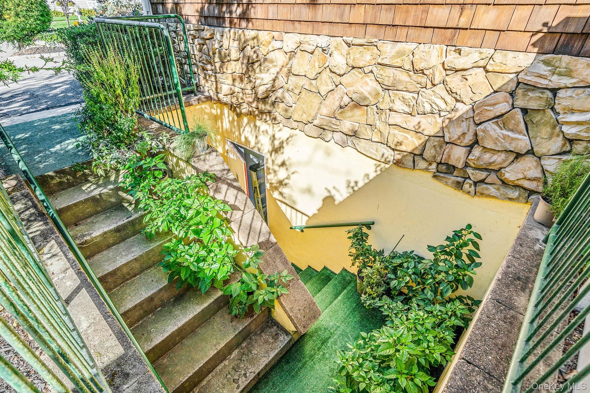 - Shingle-style home featuring roof mounted solar panels, driveway, an attached garage, and stairway