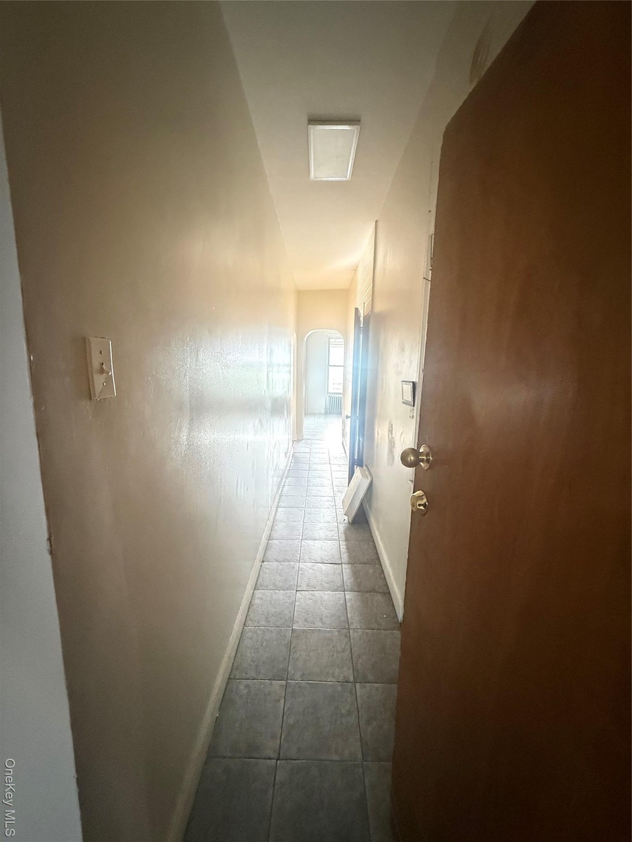 - Hallway featuring arched walkways and baseboards