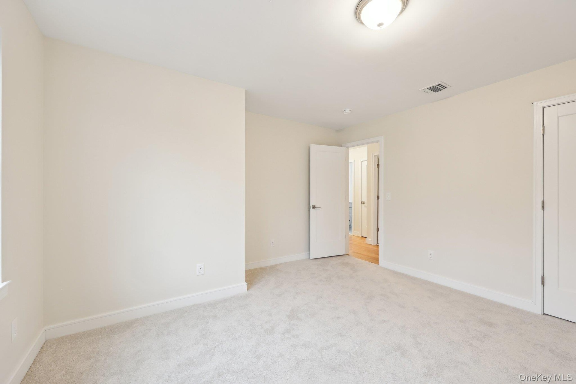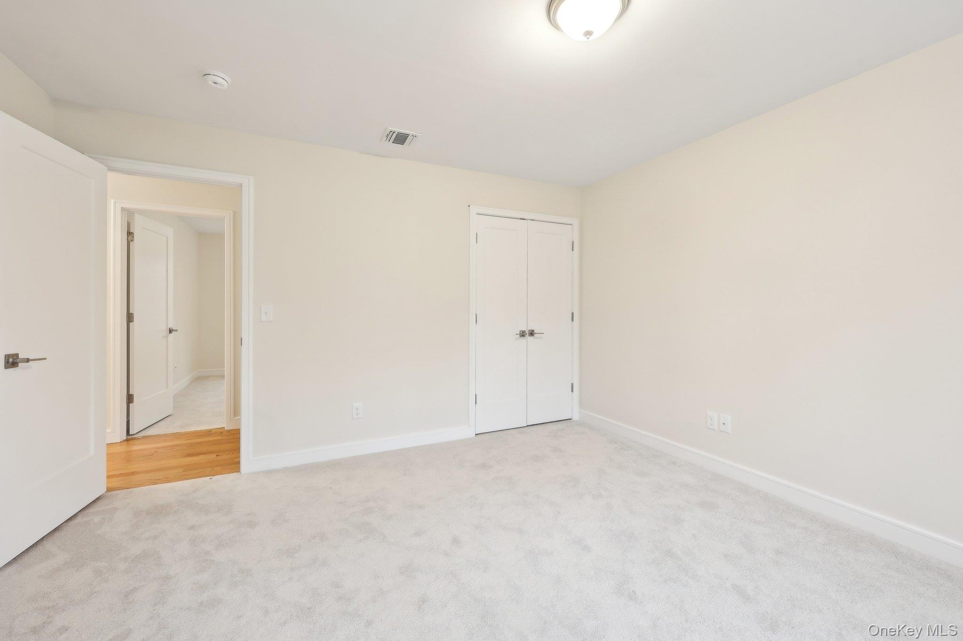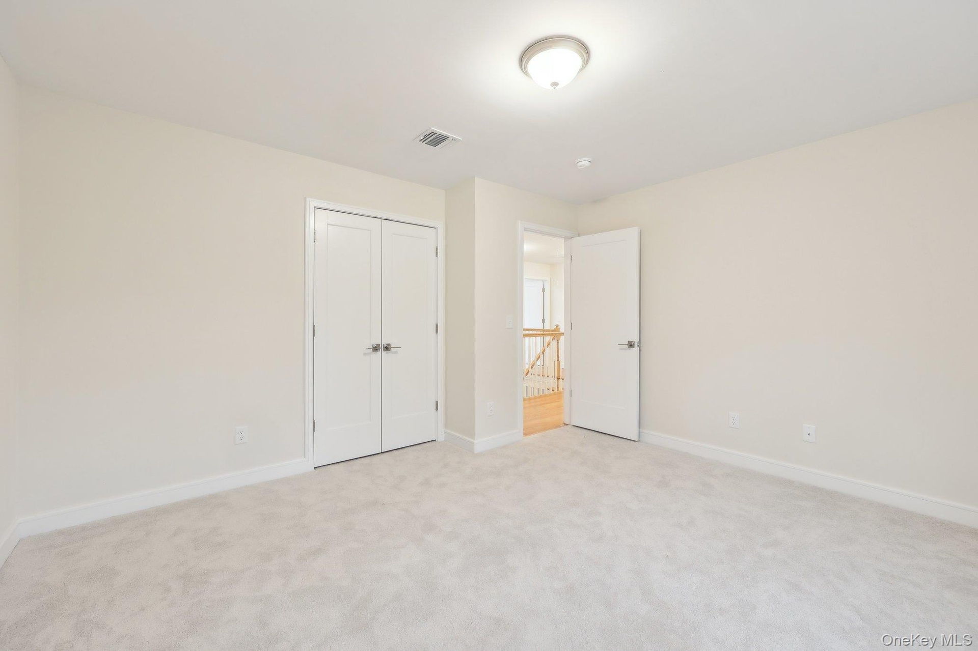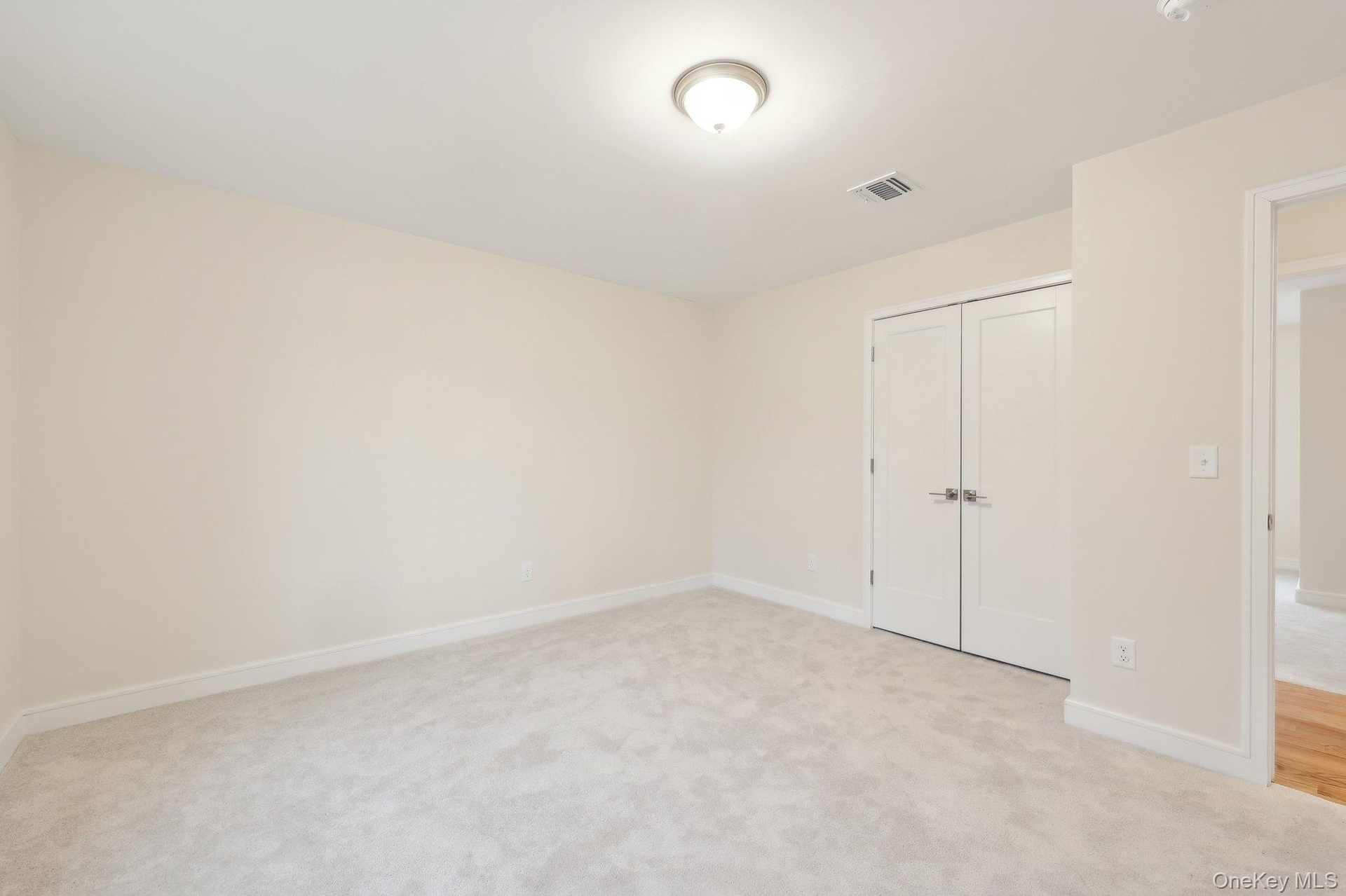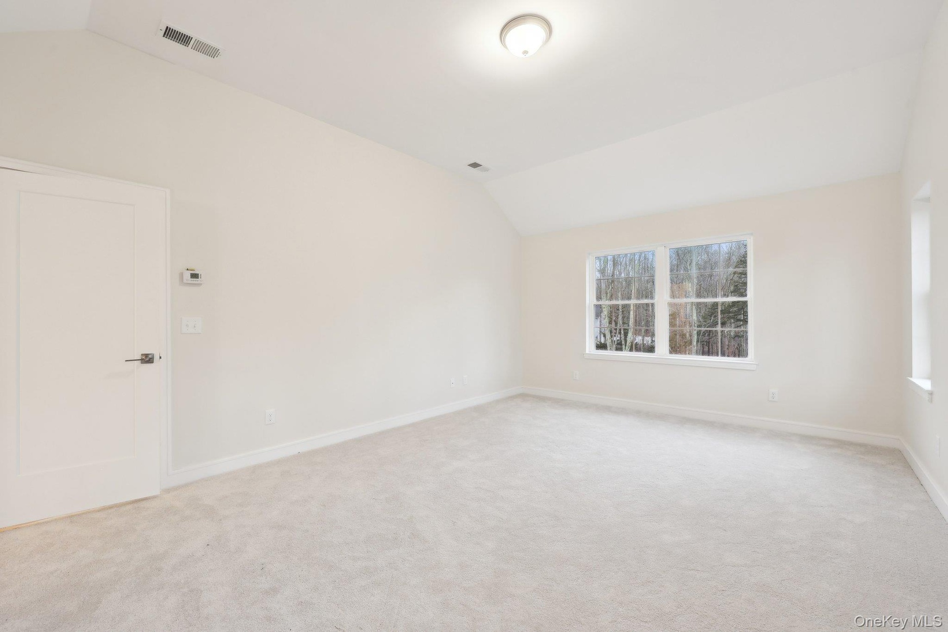 - Unfurnished bedroom with light colored carpet, vaulted ceiling, a spacious closet, and a closet