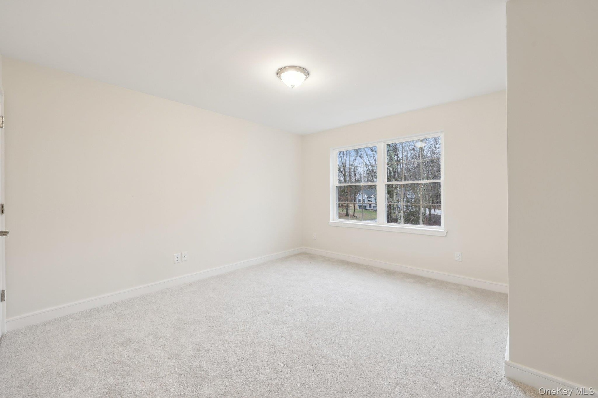 - Empty room with lofted ceiling, light carpet, and plenty of natural light
