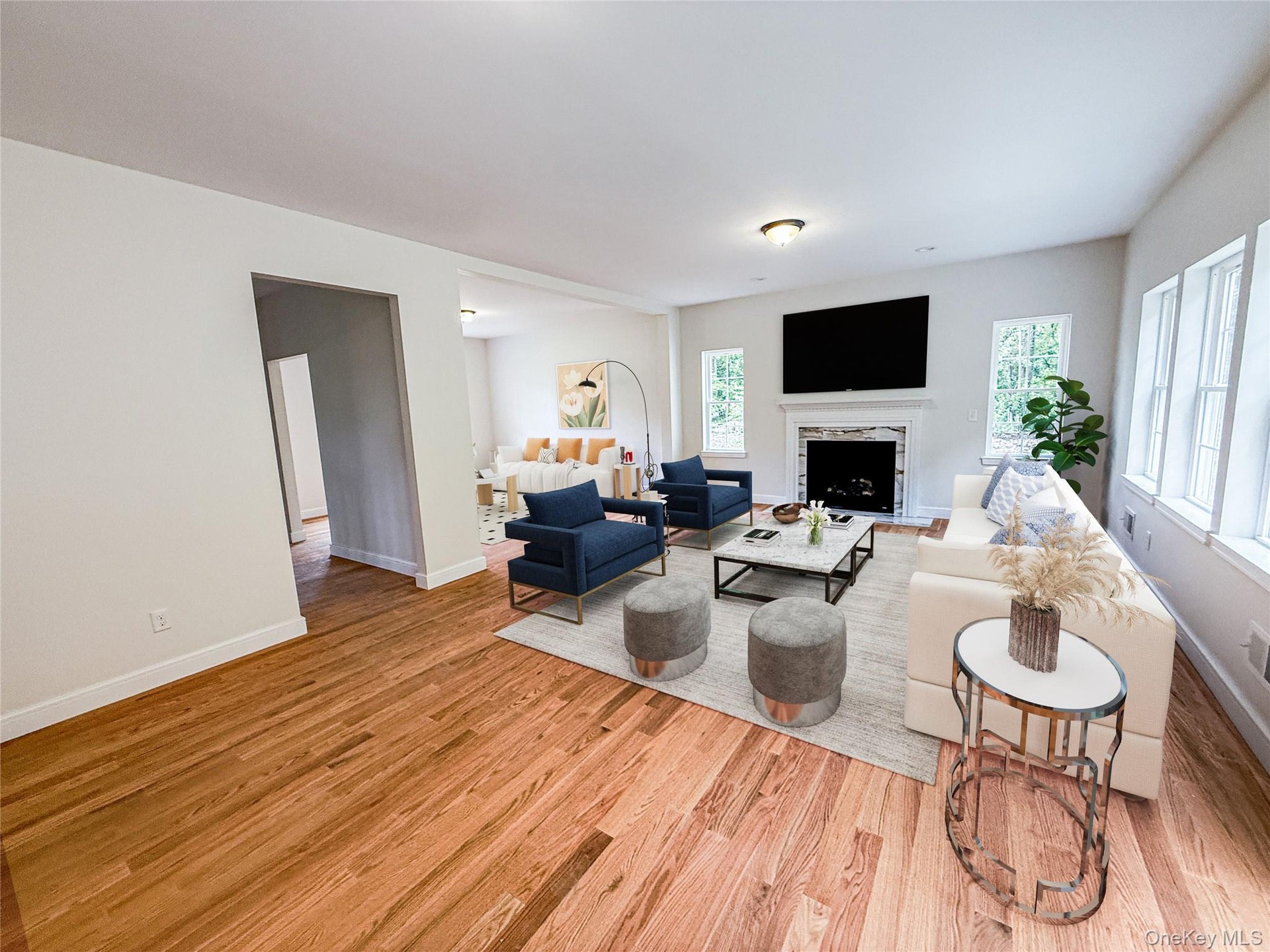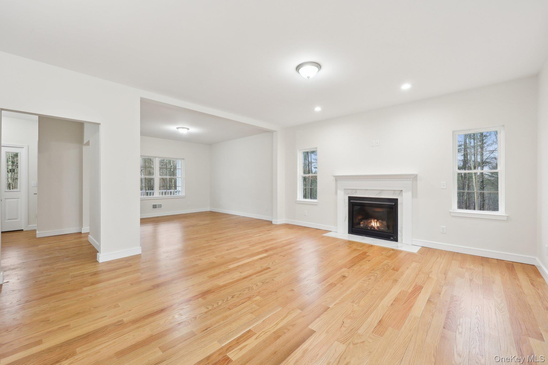 - Unfurnished living room featuring a fireplace, light wood-style flooring, and recessed lighting