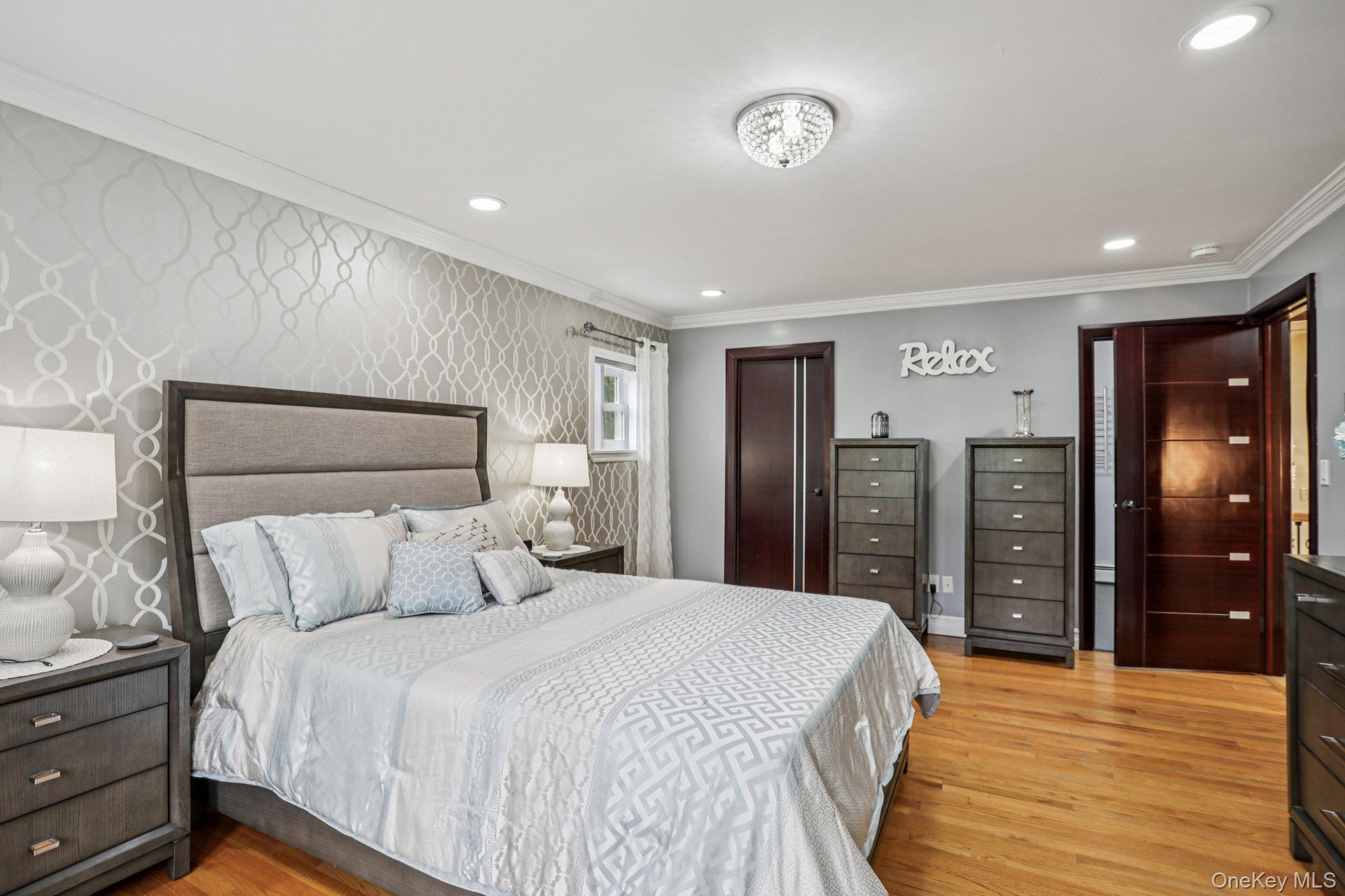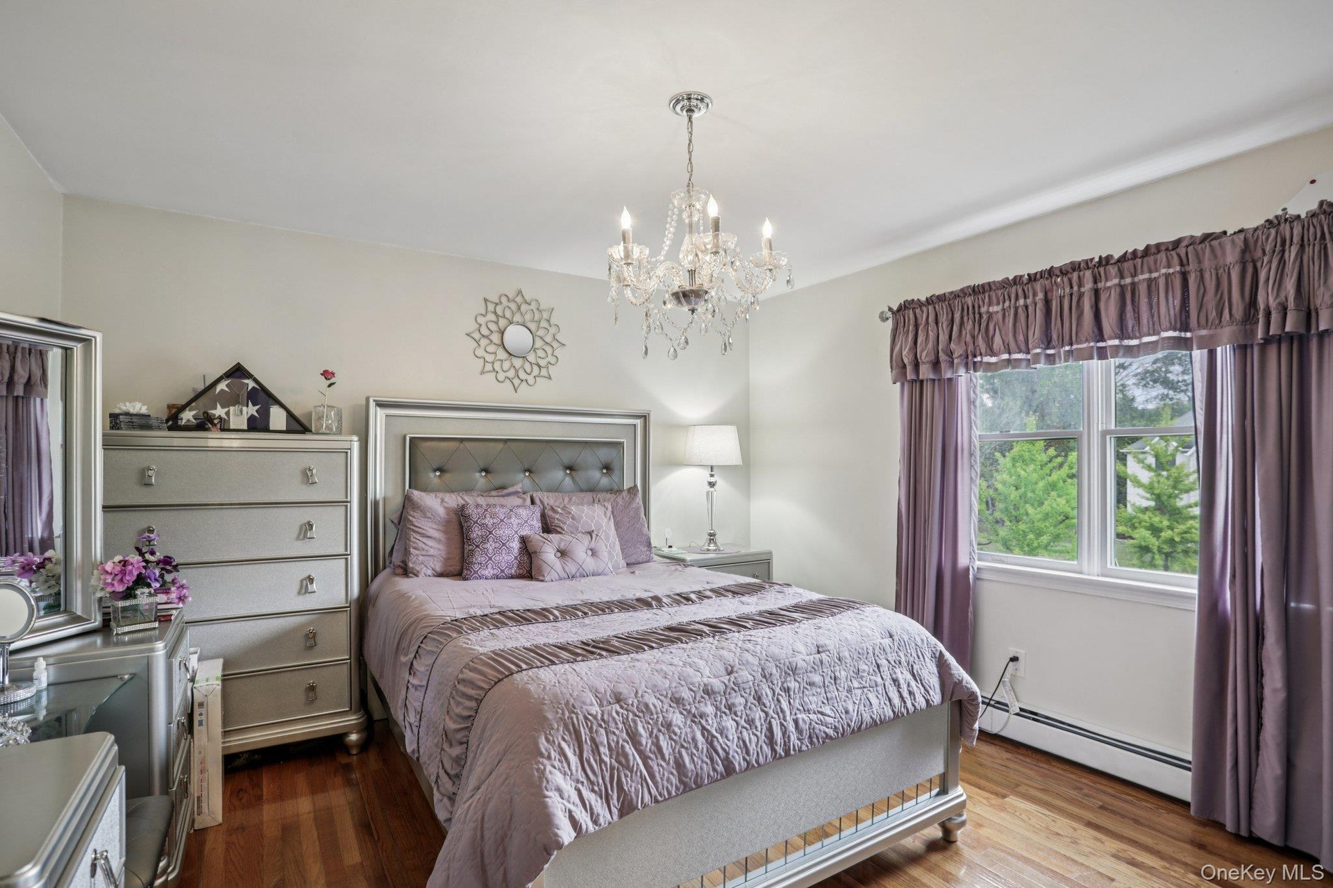 - Spacious primary bedroom with hardwood floors and abundant natural light.
