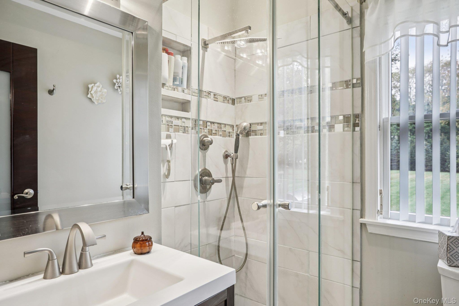 - Spa-like shower featuring multiple shower heads for a relaxing experience.