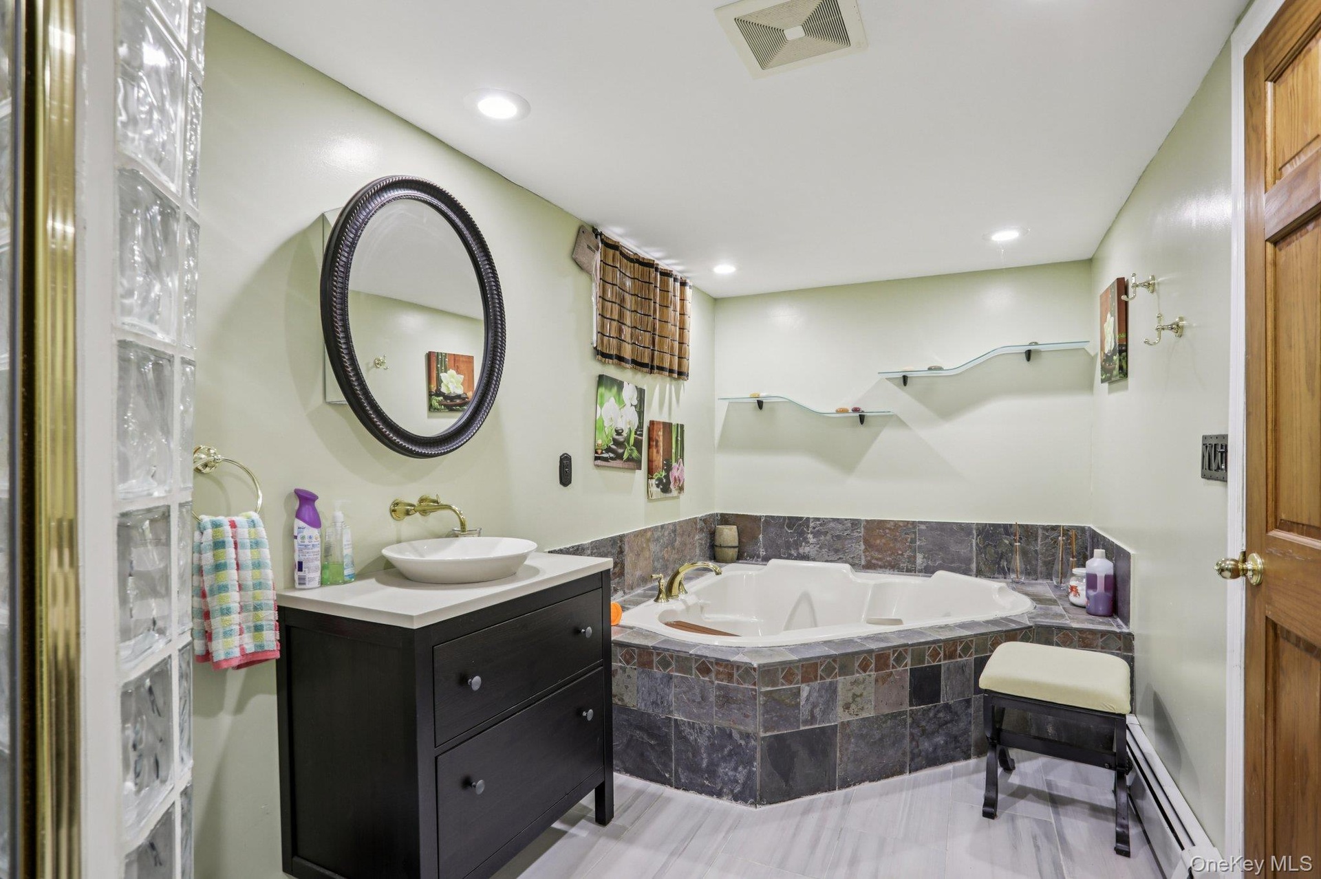 - Full bathroom featuring a whirlpool tub and separate shower for relaxation.