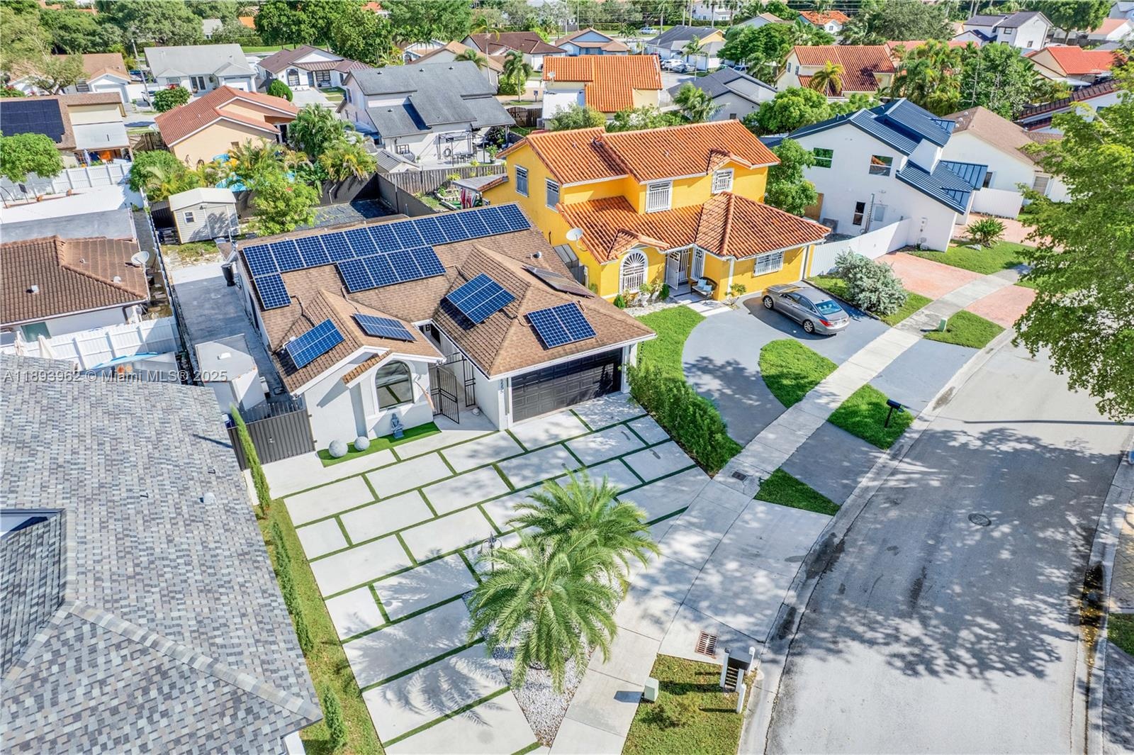 This beautifully updated one-story single-family home features 3 bedrooms and 2 bathrooms and is completely move-in ready. The modern kitchen and bathrooms have been tastefully renovated, offering both style and functionality. Step outside to enjoy a spacious backyard with a covered patio—perfect for entertaining or relaxing. The large circular driveway provides ample parking for you and your guests. Additional highlights include impact windows and doors throughout, plus energy-efficient solar panels to help reduce your utility costs. Best of all, no HOA! Don’t miss the opportunity to own this exceptional home in a sought-after neighborhood!