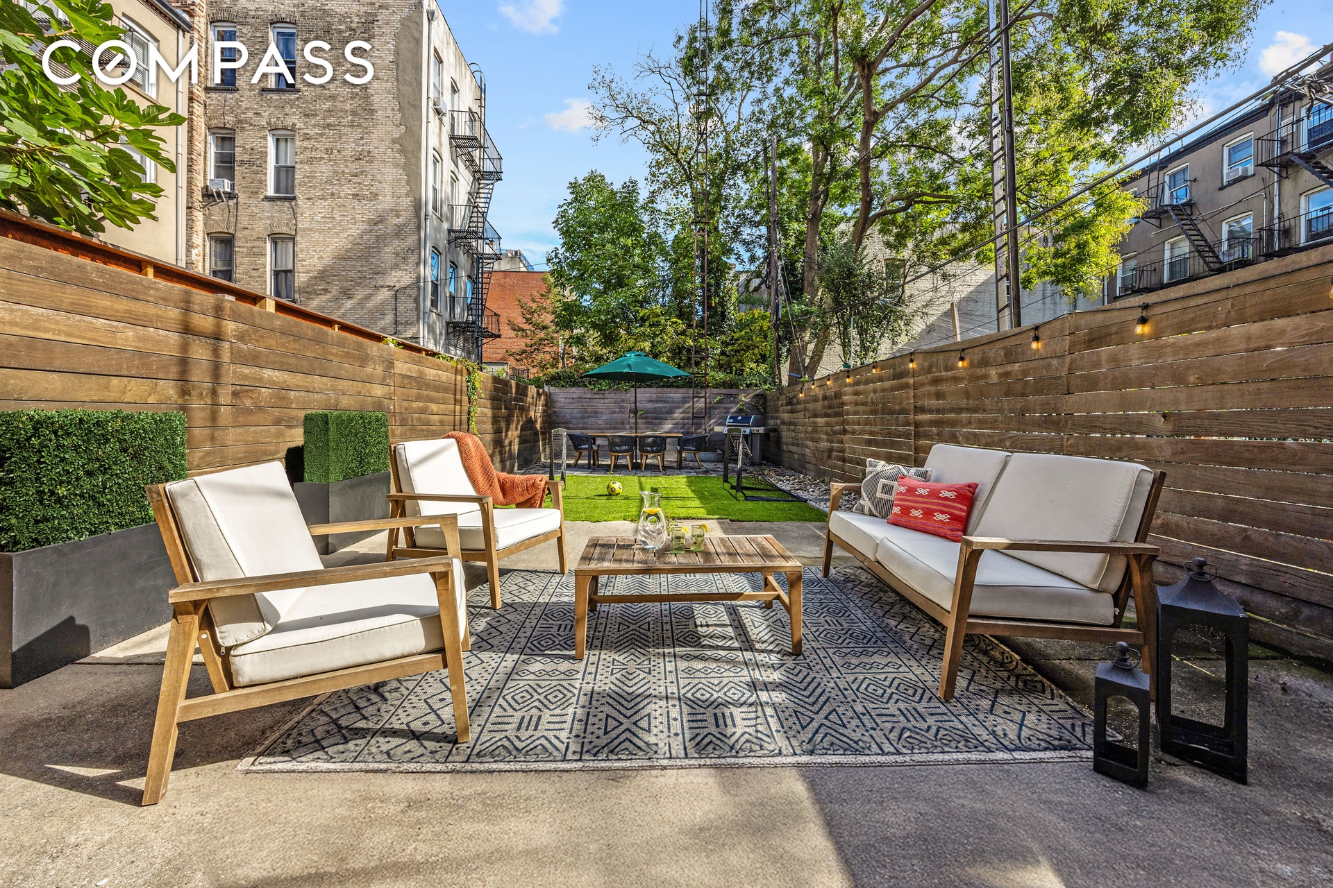 Welcome to 589 Hicks Street, Unit 1! A rare townhouse-style duplex that feels like a private home, blending elevated design, everyday comfort, and an extraordinary outdoor sanctuary. Perfectly positioned where Carroll Gardens meets Cobble Hill, this boutique condominium captures the best of brownstone Brooklyn living. Spanning two generous levels, this freshly updated two-bedroom residence opens onto an incredible 900 square foot private yard that feels like your own urban oasis. Soaring 11-foot ceilings and white oak herringbone floors flood the home with volume and light, creating a space that’s both refined and effortlessly livable. A full scale renovation guided by an interior design architect just two years ago reimagined the layout for a more open, inviting flow, introducing custom-made cabinetry throughout the kitchen, living room, and bath that blends handcrafted detail with modern practicality. The kitchen impresses with Fisher & Paykel appliances, a commercial grade vented range hood, an oversized Kraus workstation sink, a garbage disposal, and generous custom storage integrated into the open living and dining area. Both bedrooms feature oversized east facing windows with direct access to the lush private yard, where new Brazilian Ipe fencing ensures total privacy. The full bath showcases genuine marble stone hand-selected from a specialist fabricator, paired with a custom wood vanity, heated floors, and premium Isenberg fixtures. A stylish half bath on the lower level adds convenience. The spacious lower level den offers incredible flexibility as a home office, guest suite, or recreation space, complete with a vented in-unit washer/dryer and ample storage. The residence also includes its own private storage room, providing even more space for bikes, gear, or seasonal essentials. Comfort comes easy with the brand new Mitsubishi Hyper Heat AC and heat pump system, offering Wi-Fi control, energy efficiency, and a 12-year warranty for peace of mind. Despite its proximity to the Brooklyn Queens Expressway, the interior remains impressively quiet, a serene escape from city life. With low monthlies and a J-51 tax abatement through 2035, 589 Hicks delivers exceptional value and timeless design in one of Brooklyn’s most coveted enclaves. Carroll Gardens blends timeless charm with a modern spirit: tree-lined streets and brownstones surround a thriving network of local favorites including Lucali, Bar Bruno, Mazzola Bakery, Sal Tang’s, Frankies 457 Spuntino, Caputo’s, Court Street Grocer, and Other Half Brewing Company, with Trader Joe’s and Whole Foods close by. Convenient access to the F and G trains, the ferry, Citi Bike, Brooklyn Bridge, and Brooklyn Battery Tunnel make travel a breeze.