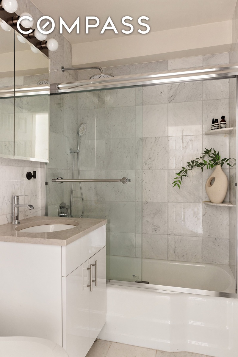 With southern exposure, the apartment is flooded with natural light that highlights the hardwood floors throughout. Each bedroom and the living room are equipped with individually controlled heating and air-conditioning units for ultimate comfort.