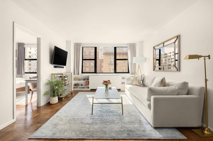 DescriptionWelcome to Gramercy Plaza, Residence 14G, a perfectly proportioned junior one bedroom in the heart of Gramercy Park. This exquisite home features custom closets and a thoughtfully designed layout that functions like a true one-bedroom, offering a remarkable sense of space and comfort. Bathed in natural sunlight (all windows are finished with beautiful solar shades), the apartment enjoys semi-filtered city views and open-sky southwestern exposures. Expansive living room windows, meticulously maintained parquet hardwood floors, and nice built-in shelves enhance the airy ambiance while creating an inviting and cozy atmosphere throughout the open living and dining room space.
