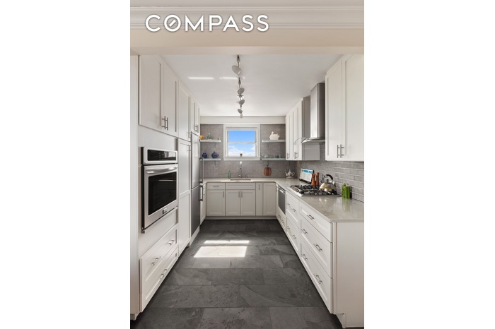 The interior welcomes you with a sense of space and warmth. Hardwood floors and elegant crown moulding run throughout, anchoring a generously sized layout designed for both relaxation and entertaining. Natural light floods the living and dining areas, while a private east-facing terrace provides a tranquil outdoor escape—perfect for savoring your morning coffee or an evening glass of wine as you take in the stunning vistas of Van Cortlandt Park and the distant shimmer of the Long Island Sound.