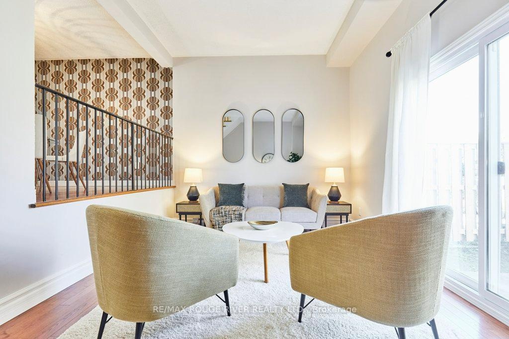 DescriptionVery affordable starter in a wonderful, family-oriented neighbourhood. Well-maintained, freshly painted and updated, the home features three spacious bedrooms with ample closet space. Huge living room with vaulted ceilings and walk-out to the patio and private, fully- fenced yard. Dining room adjacent the kitchen overlooks the living room, giving the entire main floor an open, airy and light-filled space. Kitchen includes plenty of cabinets, stainless steel appliances, double sink, built-in dishwasher, microwave oven and ceramic tile backsplash. Main bathroom was updated with a full size walk-in shower with chrome & glass door from Bath Fitter; and a beautiful ceramic floor. Hardwood floors throughout most of the house; the principal room floors feature gleaming oak planks. Stair treads are also hardwood and the main stairways have been enhanced with new premium runners. The lower level/basement includes a bright, cozy rec room with fresh new broadloom. Windows, patio door and front door all replaced in 2015. The location is ideal: minutes to the waterfront and other great parks; adjacent popular Mowat pool; amazing transit with TTC on the doorstep and Port Union GO just down the road; Port Union Rec Centre; library, shopping, great schools and much more!Amenities- Other