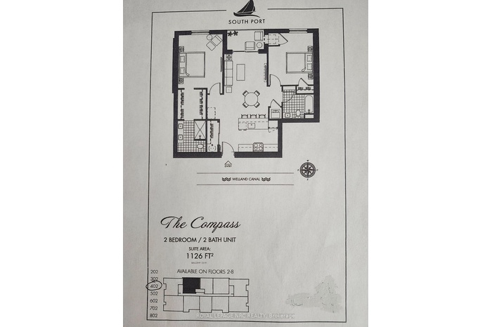 Gorgeous condo living in the brand new South Port Condos. Fabulous location along the waters of the Welland Shipping Canal and Lake Erie. Walk to shopping, restaurants and more! Luxury living throughout, open concept kitchen to dining area to livingroom to balcony. Two large bedrooms, with primary bedroom having a spacious walk through closet to a beautiful ensuite with large shower an double sinks. South westerly view of the lake from the balcony. The kitchen has quartz counters, under cabinet lighting, ample counter and cabinetry and stainless appliances including a double oven! Luxury vinyl flooring throughout and auto blinds on each window. Laundry closet with stackable Whirlpool washer and dryer. Amenities include a social lounge with outdoor bbqs, exercise room, bicycle storage, electric vehicle charging station and video surveillance at entrances. Available for a 2 year lease but will consider a 1 year lease. Great price at $2500 a month includes heat, hydro, water! Private locker and 2 dedicated parking spaces! Tenant responsible for their own internet, TV etc. Interior access to Pie Guys!