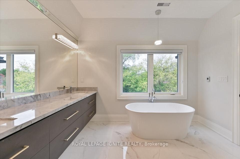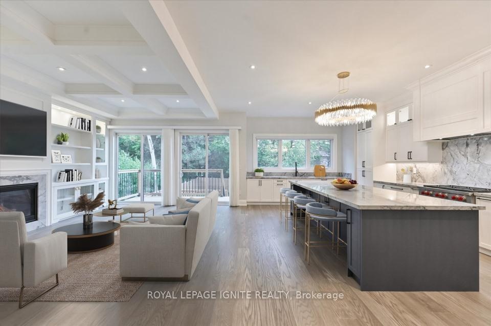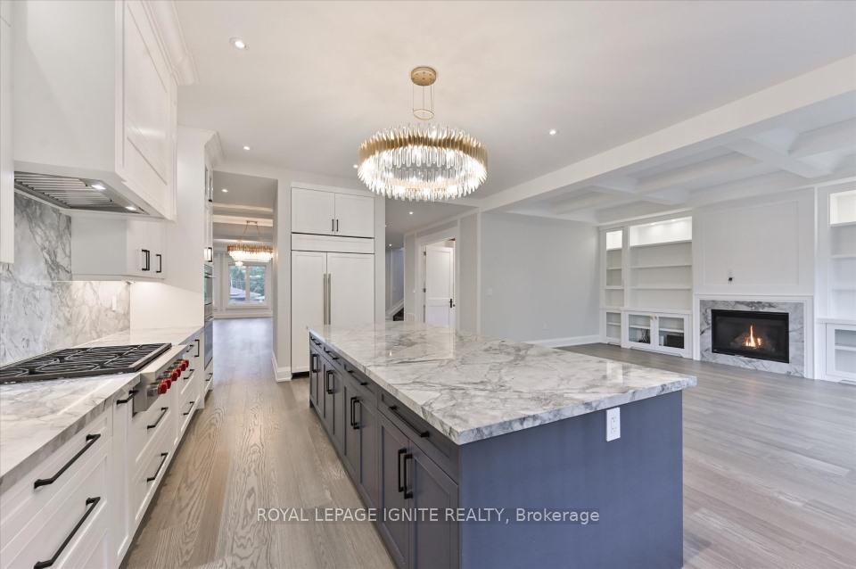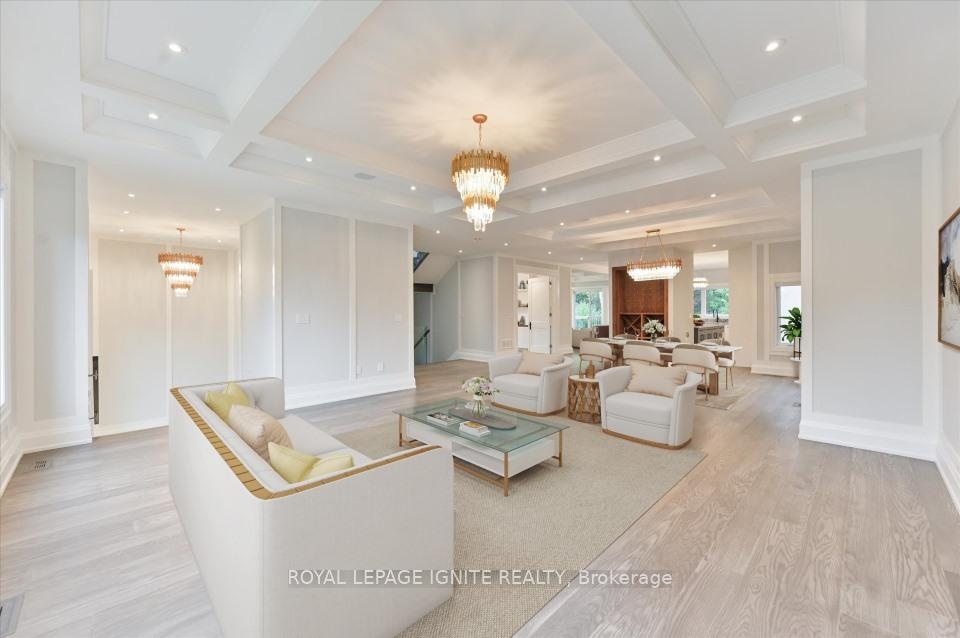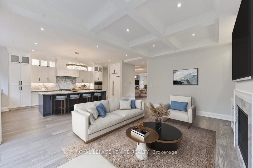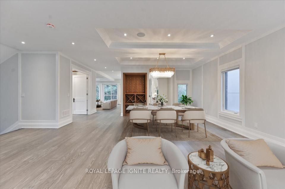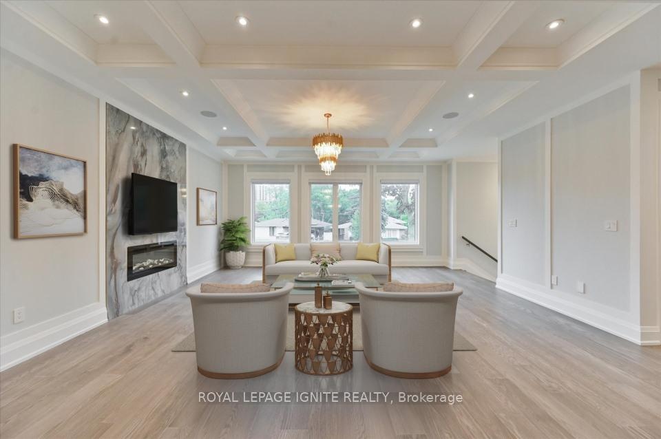Magnificent 3-Year-Old Estate Showcasing Architectural Elegance And Modern Functionality In Prestigious Bayview Village. Grand Living And Dining Areas Feature Custom Wall Paneling, Designer Coffered Ceilings, And A Sculptural Chandelier That Together Create A Striking Sense Of Sophistication. A Marble Fireplace Anchors The Formal Living Space, While The Open-Concept Dining Room Is Enhanced By A Backlit Feature Wall. The Designer Kitchen Is A masterpiece, Boasting Custom Cabinetry In Rich Contrasting Tones, Stone Countertops, And A Sculptural Waterfall Island With Breakfast Bar Seating. An Impeccably Designed, Timeless Floor Plan Offers Superior Craftsmanship And Quality Finishes Throughout. Expansive Windows And Skylights Flood The Home With Natural Light. The Gourmet Kitchen Includes A Spacious Breakfast Area And Premium Appliances. The Luxurious Primary Suite Features A Seven-Piece, Spa-Inspired Ensuite With Heated Marble Flooring. All Bedrooms Include Private Ensuites For Unparalleled Comfort And Privacy. Additional Highlights Include Pot Lights Throughout, And A Professionally Finished Walk-Up Basement Featuring 12-Foot Ceilings, Heated Marble Flooring, Two Bedrooms, Two Bathrooms, And A Separate Laundry Room Ideal For Multi-Generational Living Or Rental Potential. The Home Also Features Two Laundry Rooms, An Automated Sprinkler System, And Interlocking Stonework At Both The Front And Rear