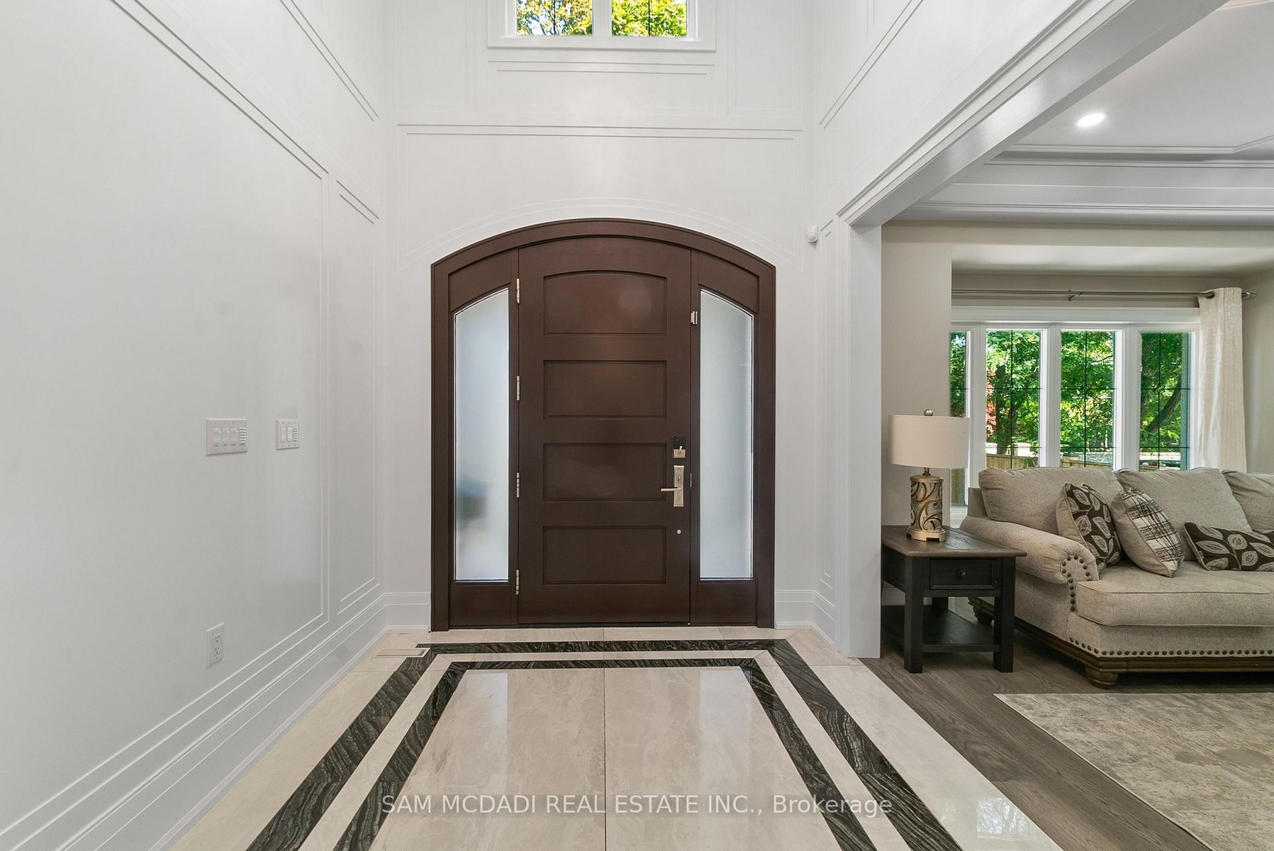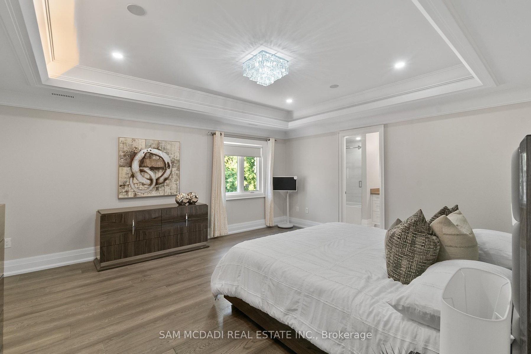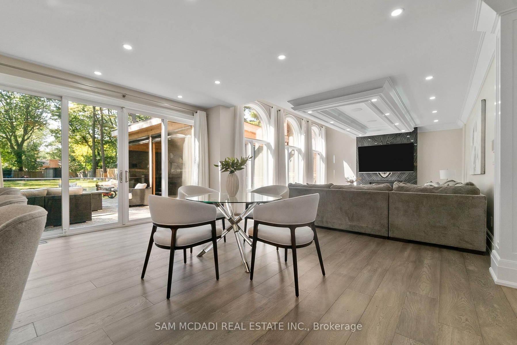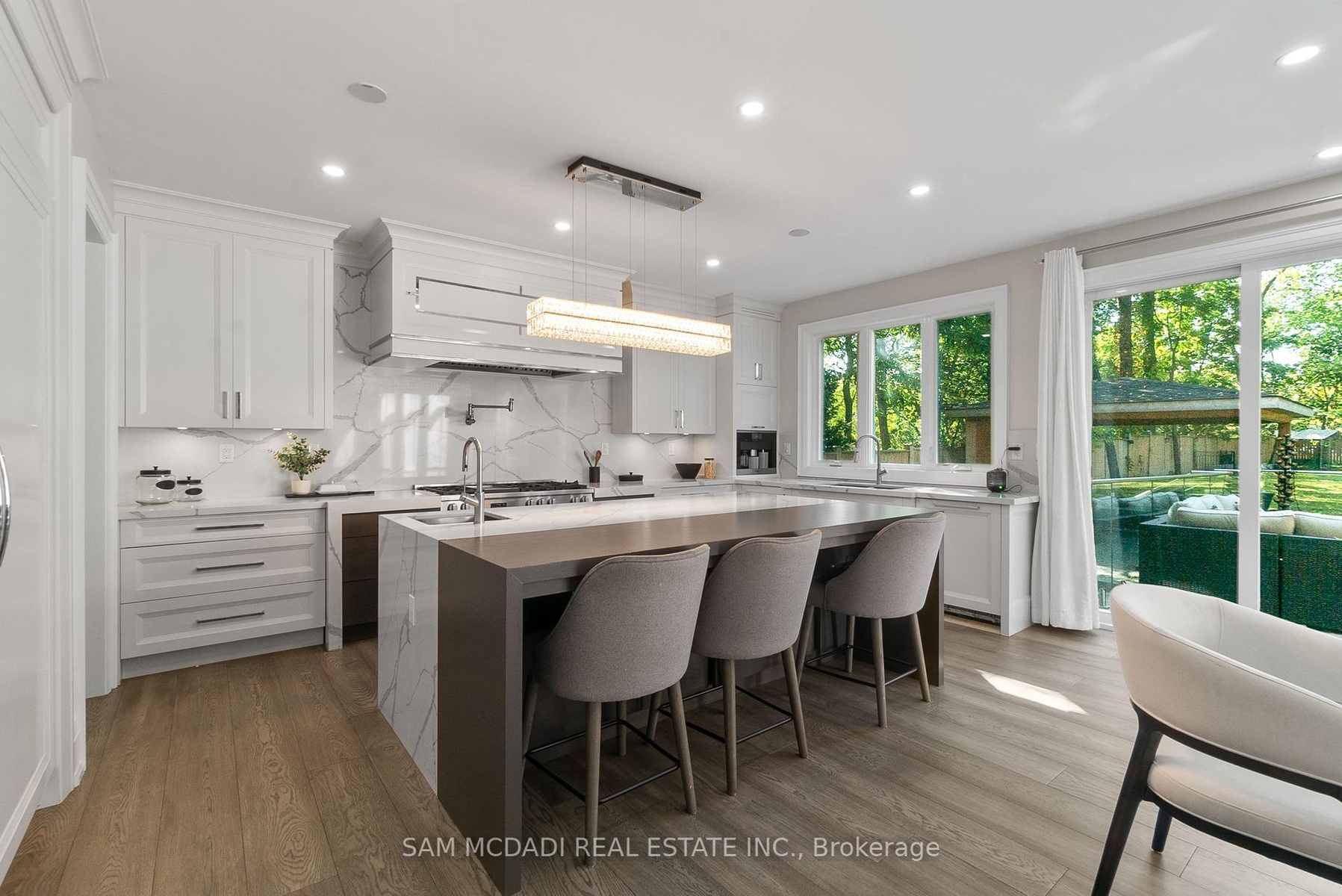 This distinguished residence sits quietly on one of Lorne Park's most desirable streets, surrounded by mature trees and a true sense of privacy. With over 6,500 SF of finished living space, the home was designed for both family comfort and large-scale entertaining, boasting classic detailing with modern aesthetics. Inside, the grand foyer opens to light-filled living and dining rooms, framed by wainscotting, coffered ceilings, and rich hardwood floors. A chef's kitchen anchors the main level with quartz counters, an oversized island, walk-through servery, and a separate pantry, while the adjoining breakfast area and family room overlook the landscaped backyard. Multiple fireplaces add warmth and atmosphere, and custom millwork emphasizes sophistication throughout. A main-floor guest suite provides comfort and flexibility for extended family or visiting friends, while brand new impact-resistant windows filter in natural light and efficiency across the home. Upstairs, each of the four bedrooms offers a private ensuite and walk-in closet, creating retreats tailored for both family and guests. The primary suite is a sanctuary of its own, with a boutique-style dressing room and a spa-like ensuite featuring a freestanding tub, glass shower, and heated floors.The lower level extends the lifestyle with radiant heated floors, a recreation room with full bar, a home office, guest suite, and walk-up access to the outdoors. The backyard is extraordinary in scale, complete with stone patios and a covered cabana with built-in BBQ that create endless entertaining possibilities, with space for a future pool, sport court, or tennis court. Equipped with Control4 home automation, built-in speakers, and two laundry rooms, every detail has been considered. The nearby amenities are equally impressive: top-ranked schools, boutique dining in Port Credit, lakefront trails, and hidden gems like Rattray Marsh are just minutes away. A perfect home for the discerning buyer!